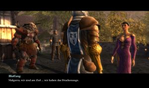 Sobald man den Burghof betritt, startet eine Zwischensequenz, an dessen Ende Malgorra das Auge des Drachen von uns fordert und damit droht den Burgherren und seinen Sohn umzubringen. Egal ob man sich weigert, oder nicht, Malgorra kommt in den Besitz des Drachenauges. Danach folgt eine Diskussion zwischen Malgorra und ihrem Partner Noldrokon, den sie nun verrät und seinem Schicksal überlässt. Es kommt wie es kommen muss und während sich die Verräterin mit ihrer Magie aus dem Staub macht, müssen wir gegen Noldrokon kämpfen.