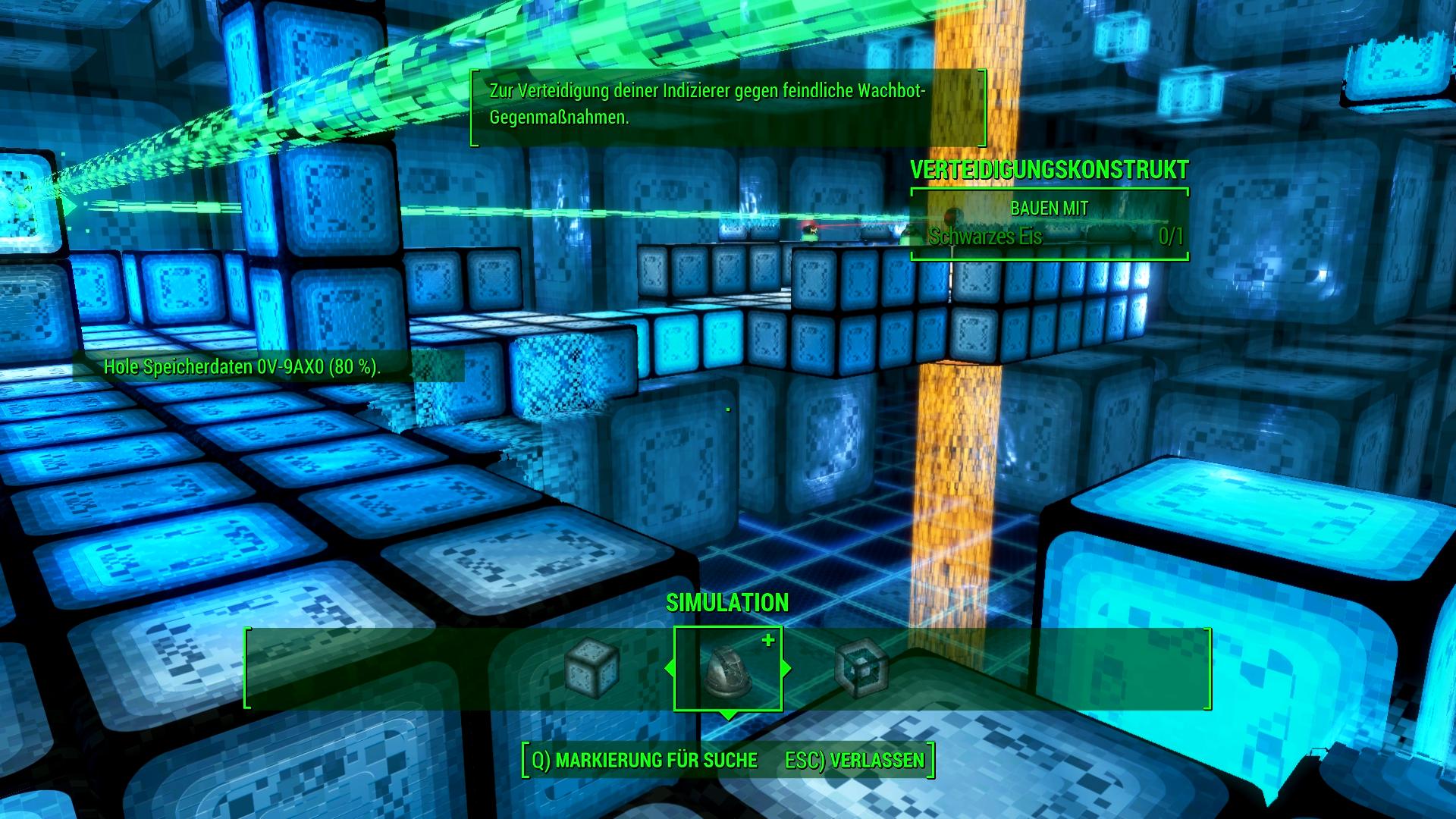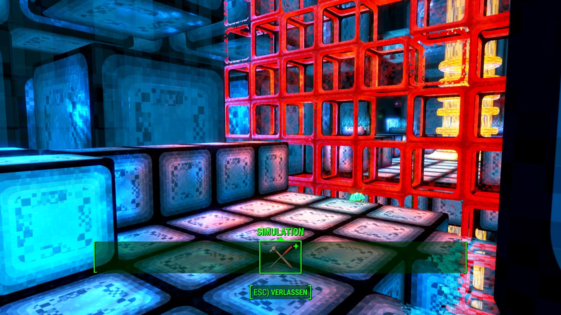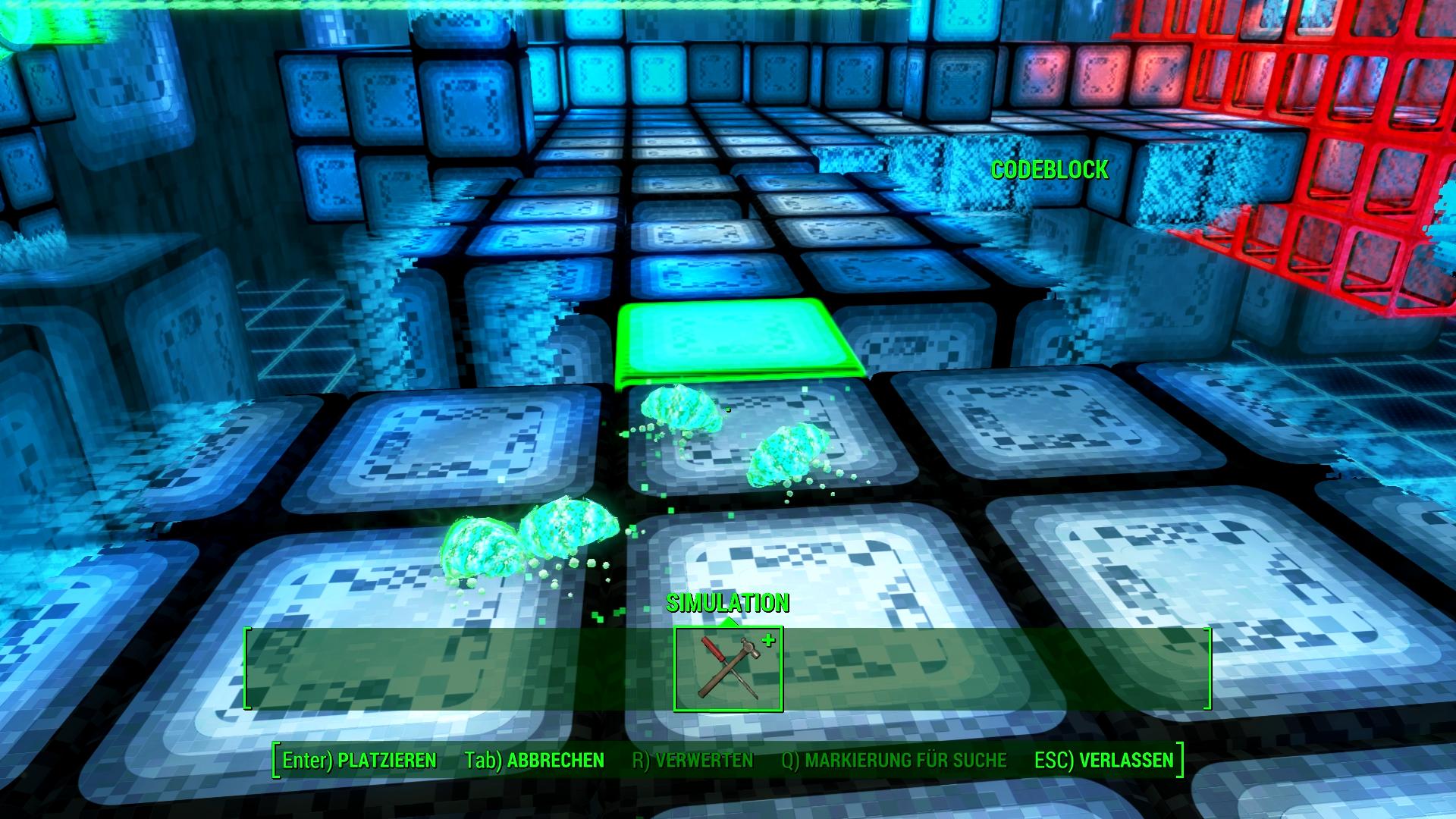 - Entfernt den Codeblock auf dem Sockel, welcher den grünen Strahl blockiert. Das zerstört die erste Firewall.