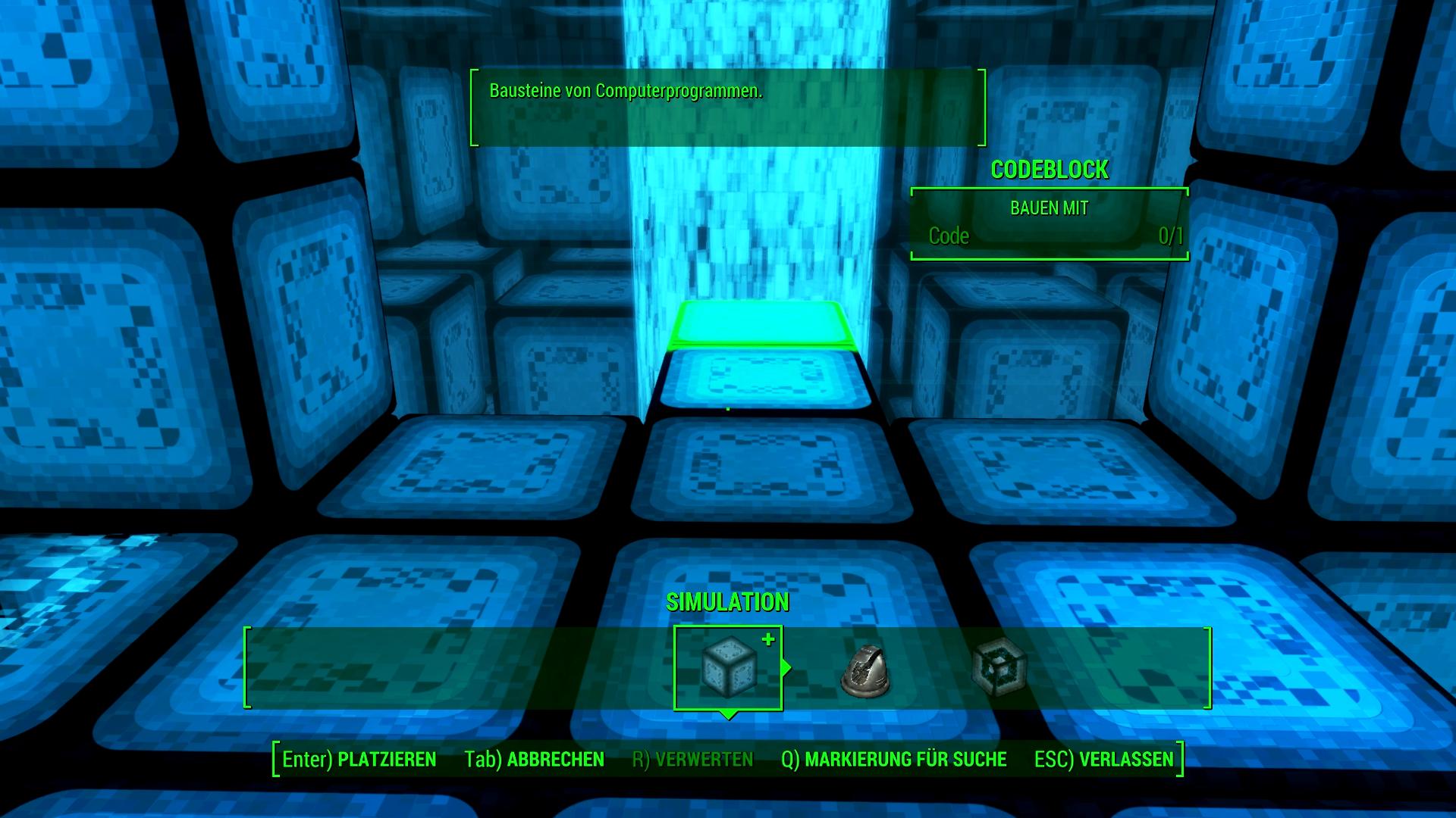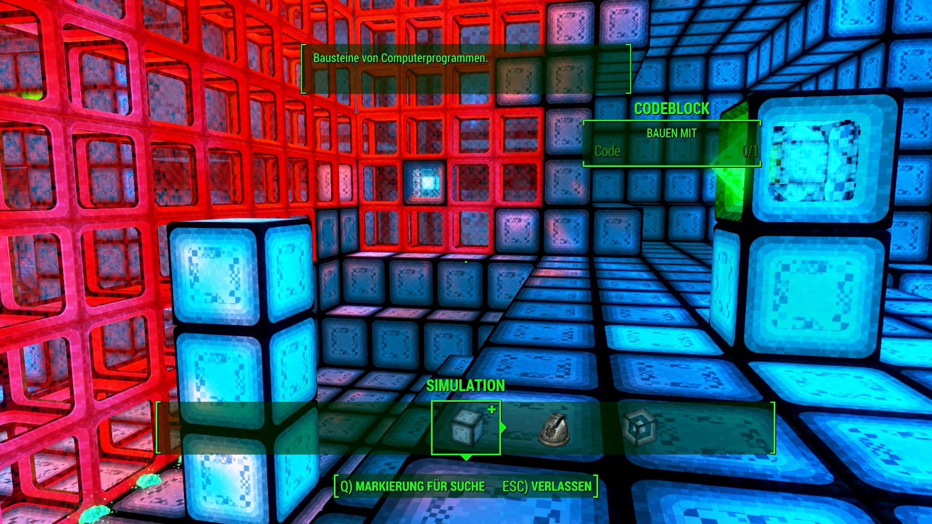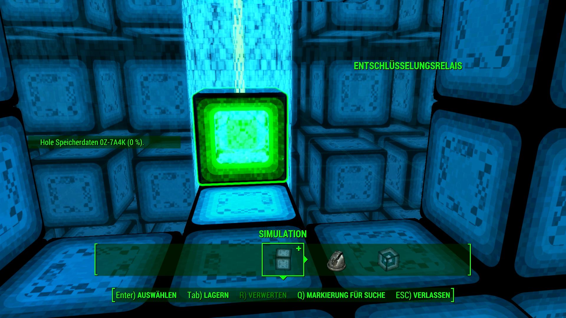 - Setzt nun einen einzigen Codeblock an andere Ende des Ganges und das zweite Entschlüsselungsrelais darauf. Es muss so gedreht sein, dass es den Strahl um 90 Grad versetzt nach rechts auf die grüne Datenleitung umlenkt. Das zerstört die letzte Firewall.