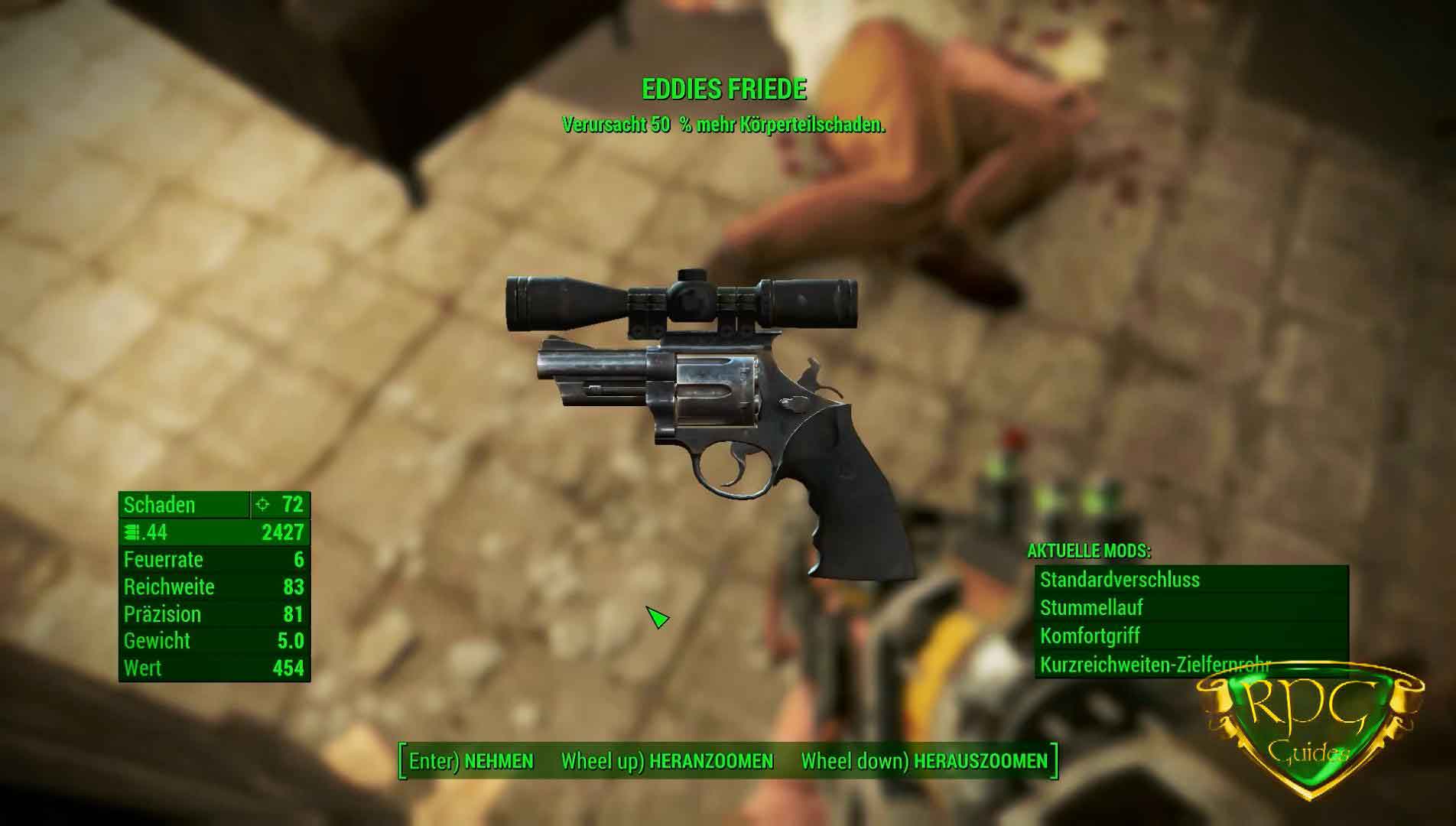 ID: 00225ae9 Ort/Gebäude: Andrew Station Fundort: Beute von Eddie Winter in seinem Verteck an der Andrew Station. Nur zugänglich über Nick Valentines persönliche Quest: "Was lange wärt ...".