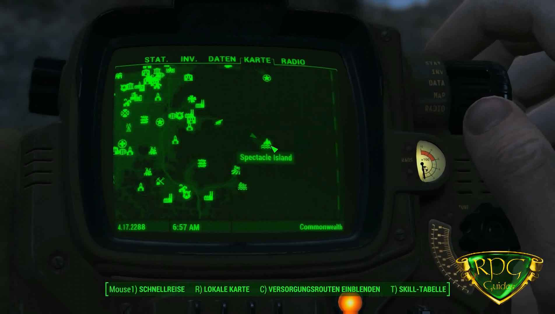 Perk: +1 Glück ID: 00178b5a Ort/Gebäude: Spectacle Island Fundort: Im Spint des obersten Deck des grünen Schiffs am Südende der Insel.