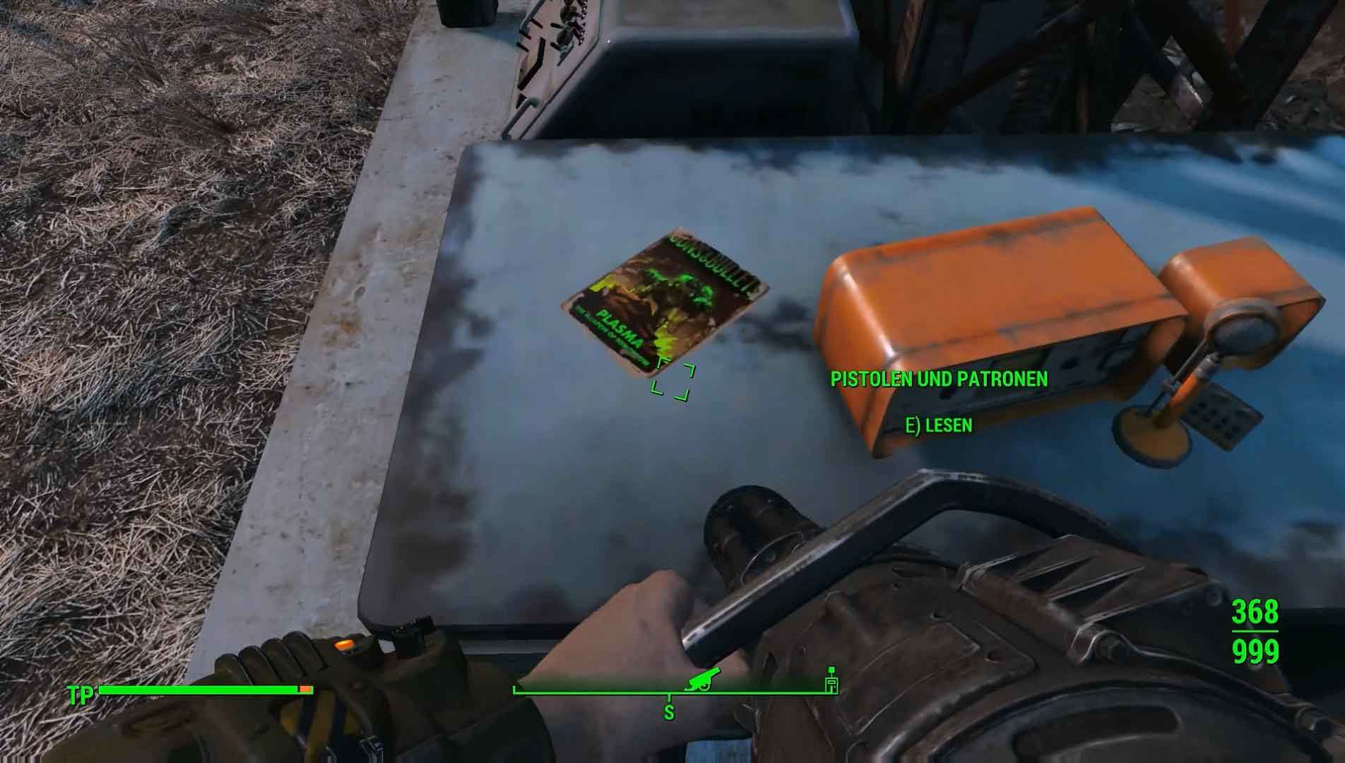 Fundort: Die "Plasma - The Weapon of Tomorrow" Ausgabe liegt auf dem Schreitisch am Funkturm im Zentrum des Burghofs.