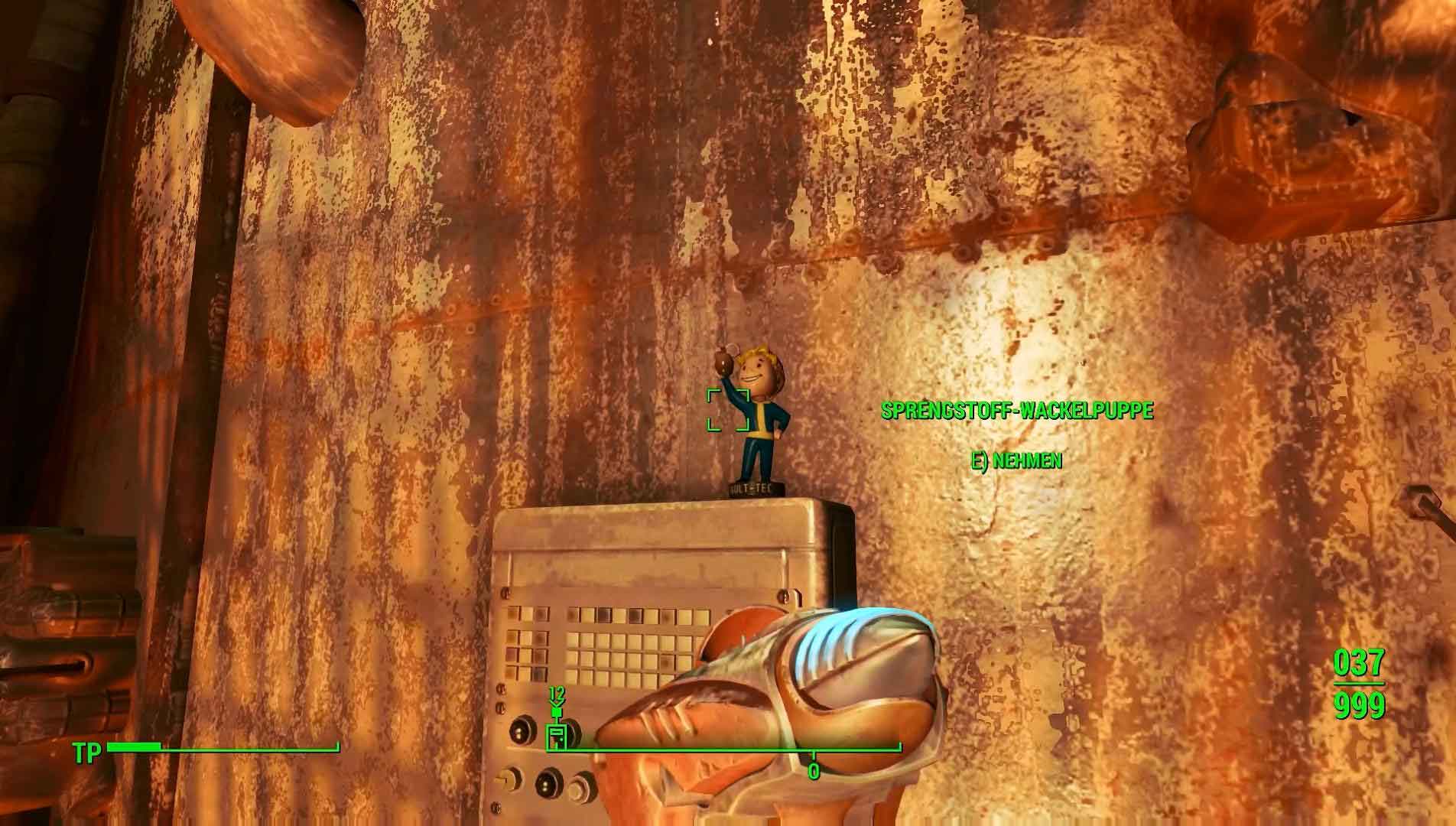 Perk: +15% Schaden mit Sprengstoff ID: 00178b57 Ort/Gebäude: Saugus Ironworks Fundort: Auf der Schalttafel hinter dem Geschmiedeten Bosses in Saugus-Hochofen (2. Abschnitt).