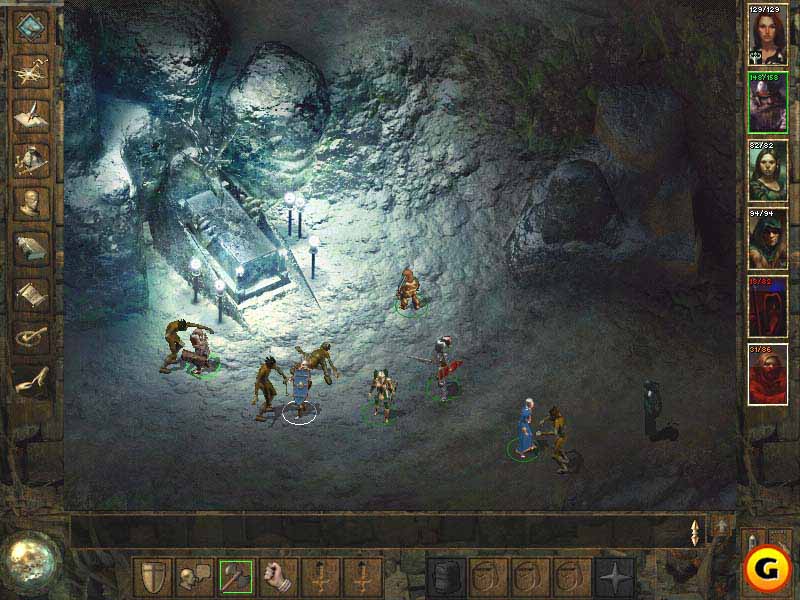 In Icewind Dale und Heart of Winter waren die Kämpfe sehr wichtig, mehr als in anderen CRPG's. Weil die Kämpfe für Heart of Winter so entscheidend sind, wollten wir sichergehen, dass sie die richtige Mischung aus Schwierigkeit, Variation und Spaß haben. Eine der Beschwerden von Spielern über Icewind Dale war, dass die "schleichen und kriechen" Taktik immer benutzt werden konnte. Bei dieser Taktik können die Spieler durch das ganze Gebiet schleichen um die Standpunkte der Monster aufzudecken und dann krochen sie hervor um immer nur ein Monster gleichzeitig zu bekämpfen. In der Erweiterung haben wir dieses Problem gelöst, indem wir ein "Ruf nach Hilfe" Feature eingebaut haben, das auch durch den Nebel des Krieges hindurch funktioniert. Viele Monster arbeiten nun in Teams. Wenn eins angegriffen wird alarmiert es die anderen Mitglieder seiner Gruppe, die dann den Charakter über die ganze Karte verfolgen, um ihre Kampfskripte auszuführen. Wir hatten ein paar Probleme mit Performanceeinbußen durch dieses Feature, also haben wir die feindlichen Reihen ein wenig ausgedünnt und dafür die individuellen Monster aufgepäppelt.
