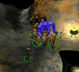 Mit den Werkzeugen im Gepäck machen wir uns auf, den verschütteten Gang frei zu schaufeln. Auf der anderen Seite gehen wir weiter und betreten eine andere Höhle, welche mit Gängen durchzogen ist. Bei einer vorsichtigen Untersuchung werden wir immer wieder von Erdkollossen angegriffen, die durch die Wände brechen.