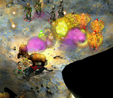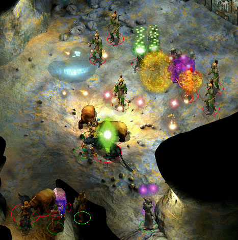 Dort, wo sich die Höhe verbreitert, wartet der Beastlord Harshom auf uns. Scheinbar hat er unseren Werdegang schon seit Talos verfolgt und will uns hier endgültig den Garaus machen. Nach einigem Geschwätz läuft alles auf einen weiteren Kampf hinaus, welcher hier ohne Vorbereitung ziemlich schwierig wird. Harshom hat Unterstützung von einigen Magiern aus dem Heerturm von Luskan und mehreren Bogenschützen. Zudem hat er dressierte Kriegs-Bären und Kampf-Katzen dabei. Wie wir von ihm erfahren, war schon Phaen in Targos einer seiner Männer. Unseren Aufenthaltsort hat er von Carita und Leevi erfahren.