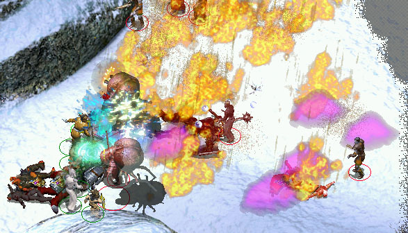 Das Vorgehen, welches mich schliesslich siegreich aus der Schlacht hervorgehen liess: Bevor man dieses Gebiet betritt, allen Nahkämpfern einen Trank der Riesenstärke (oder etwas in der Art) in den Quick-Slot legen. Stoneskin oder ähnlichen Schutz auf die Charaktere mit schlechterer Rüstungsklasse und die Riesenstärketränke einflössen. Dann Bless, Improved Haste und Mass Invisibility auf die ganze Gruppe zaubern. Jetzt das Gebiet wechseln. Die Redesequenz findet statt, obwohl die Gruppe unsichtbar ist. Die Unsichtbarkeit verschafft uns den kleinen Vorteil, dass die Nahkämpfer um Saablic Tan erst mal nicht angreifen. Diesen kurzen Augenblick nutzen wir, um Insektenplage und Feuerball auf die Gegner zu zaubern. Nun setzen sich die gegnerischen Nahkämpfer in Gang und unsere Nahkämpfer nehmen diese in Empfang. Zwischenzeitlich lassen wir noch Acid Rain und Firestorm auf die Zauberer um Saablic Tan regnen. Dornenwachstum, Cloudkill, Call Lightning und alle Flächenzauber, die viel Schaden anrichten, sollten in die hinteren Reihen der Gegner gezaubert werden. Gegen die Nahkämpfer werden zur Hilfe ein paar Monster beschworen. Wenn die Möglichkeit besteht, sollte man die Nahkämpfer noch mit Defensive Harmony und Emotion: Hope unterstützen. Das Hauptaugenmerk sollte man jedoch darauf legen, dass die Zauberer um Saablic Tan so wenig wie möglich von ihren Sprüchen auf unsere Gruppe los lassen können.