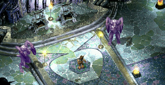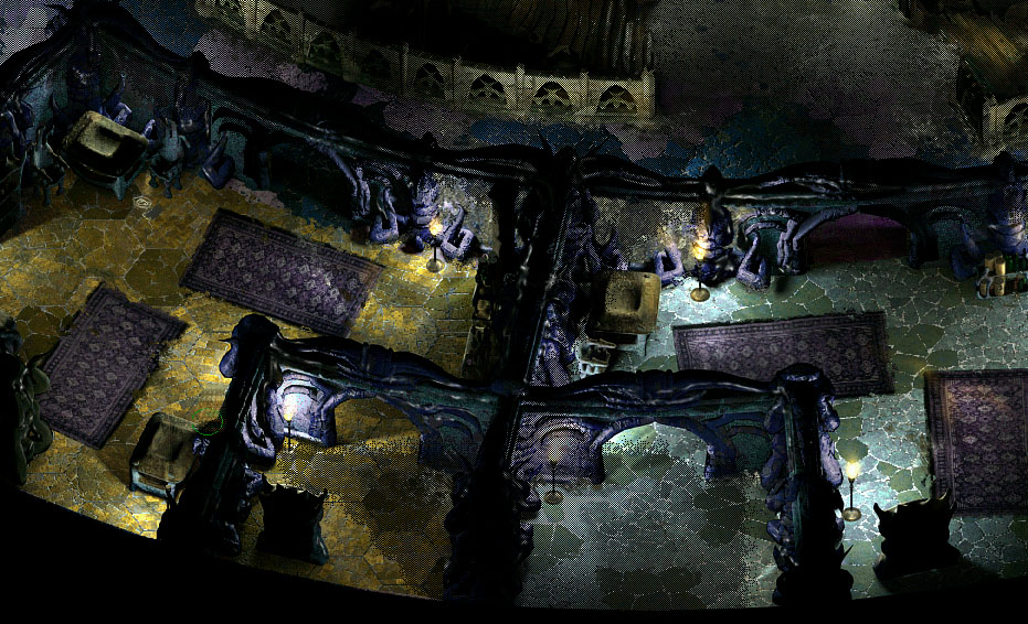 Schliesslich erkunden wir noch die Räume von Isair und Madae. (5) Bevor man diese betritt, sollte man unbedingt die Fallen entschärfen, da sonst Gefahr besteht, dass eines oder mehrere Gruppenmitglieder versteinert werden. Im Raum sind nur zwei Glabrezu Guards anzutreffen, die jetzt noch unsterblich sind. Bevor wir diese angreifen, sollten wir den ?Globe of Essence' im zweiten Level zerstören. Doch noch sind wir nicht soweit, das tun zu können. In diesen Räumlichkeiten wird es zur gegebenen Zeit zum Endkampf gegen die Geschwister kommen.