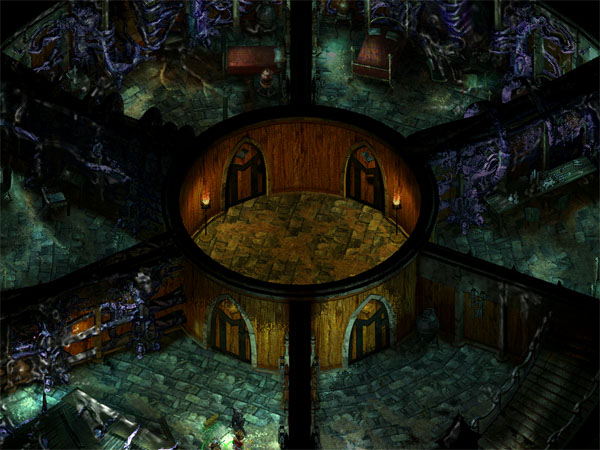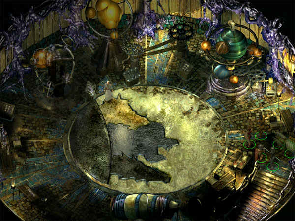 Auf der Ebene, wo wir durch das Portal landen, können wir von den Magielehrlingen erfahren wo sich Orrick aufhält. Ansonsten gibt's hier nichts aufregendes. Man kann hier ungestört in Kisten herum wühlen, um vielleicht einige hilfreiche Gegenstände zu finden.