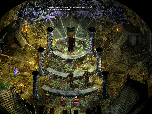 Während das Ritual seinen Gang nimmt, ertönt plötzlich eine Stimme, die uns ein Geschäft vorschlagen will. Es handelt sich dabei um Iyachtu Xvim, der uns anbietet, uns im Kampf gegen Isair und Madae zu helfen. Wenn wir dem zustimmen, wird Iyachtu Xvim von uns verlangen zehn Unschuldige zu töten. Wir können dieses Geschäft gleich ausschlagen, da der bösartige Auserwählte von Bane uns anlügt. Dann bleibt uns allerdings nichts anderes übrig als gegen ihn zu kämpfen. Und das wird ein sehr harter Kampf, wobei die beachtlichen Erfahrungspunkte für seinen Tod ein wenig für die grossen Mühen entschädigen.