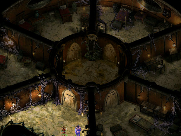 Noch ist hier im Cleric Tower nicht alles erledigt. Sollten wir die Hilfe von Ormis Dohor und seinen Mönchen im Endkampf annehmen wollen, müssen wir uns hier bis in die oberste Etage des Turmes durch kämpfen. Gleich im nächsten Level stehen wir einer Gruppe Hatelords und Ruinlords gegenüber. Um Tyrannar Brutal Mar verfolgen zu können, benötigen wir für jedes Gruppenmitglied ein ?Iyachtu Xvim Holy Symbol'. Drei sollten wir bisher schon besitzen. Die fehlenden finden wir hier und auf der dritten Etage.