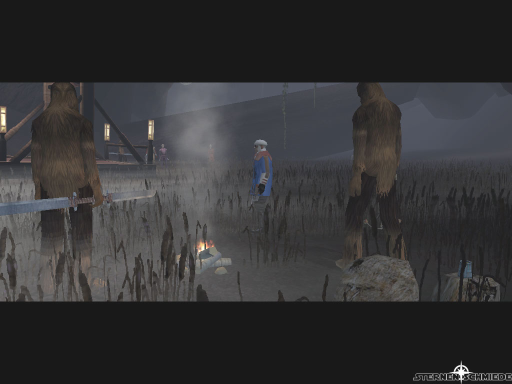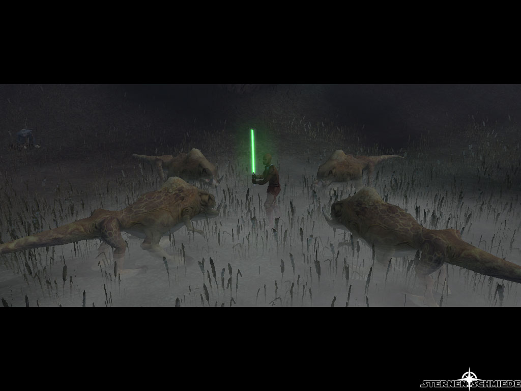 Einen Augenblick später rennt er von dannen. Bei eurer Verfolgung kommt ihr an einigen Tach Affen vorbei. Welche ihr aber nicht angreifen könnt, selbst wenn ihr Missions Side-Quest ausführt. Falls ihr Jolee aus den Augen verlieren solltet, geht die erste Abzweigung nach Süden. Er sollte euch am nordwestlichen Ausläufer der zweiten Abzweigung wieder erwarten. Im folgenden Gespräch behauptet er, weder ein Jedi noch irgend etwas anderes zu sein. Er seihe nur ein alter Man, der in den Wäldern lebt. Befragt in weiter nach der Sternenkarte und dem Wookie. Er scheint über Rorworrs Schicksal bereits Bescheid zu wissen. Es aber keinen andern herausfinden lassen zu wollen. Auf die Sternenkarte angesprochen, erwähnt er, dass ihr diese nicht ohne seine Hilfe erreichen werdet. Selbstverständlich erfordert diese Hilfe jedoch zunächst eine Leistung eurerseits. Eine Gruppe Wilderer (Czerka Corp. Jäger) haben sich in der Nähe seiner Unterkunft niedergelassen. Ihre Gier nach Profit lässt sie die hilflosen Spezies der Region abschlachten. Diese sollt ihr "entfernen". Er äußert aber auch den Wunsch, sie dafür nicht zu töten. Willigt ein ihm zu helfen.