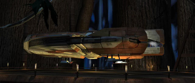 Dieser Sequenz folgt erneut eine eurer Visionen: Eine weitere Sternenkarte wird irgendwo auf diesem Planeten aktiviert. Nachdem der Ebon-Hawk gelandet ist, fängt Bastila mit einem Gespräch über diese an. Sie bringt ihr erstaunen darüber zum Ausdruck, dass eine solch hochentwickelte Technik auf einem unterentwickeltem Planeten wie Kashyyyk zu finden ist. Erwähnt ihr gegenüber, dass es aussah als ob sich die Karte auf dem Waldboden befunden hätte. Woraufhin sich herausstellt, wie viel sie mit den Wookies zu tun haben kann, da diese ausschließlich hoch in den Bäumen leben. Somit könnt ihr davon ausgehen, dass die Wookies euch bei der Suche kaum hilfreich sein können. Sprecht vorsichtshalber mit all euren Gruppenmitgliedern, die danach verlangen und verlasst daraufhin das Schiff.