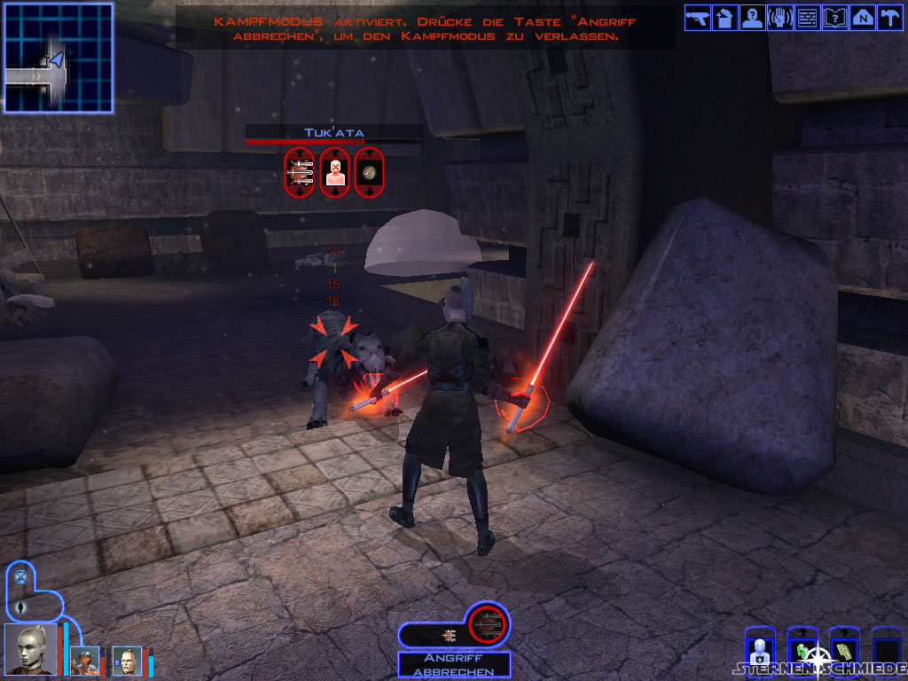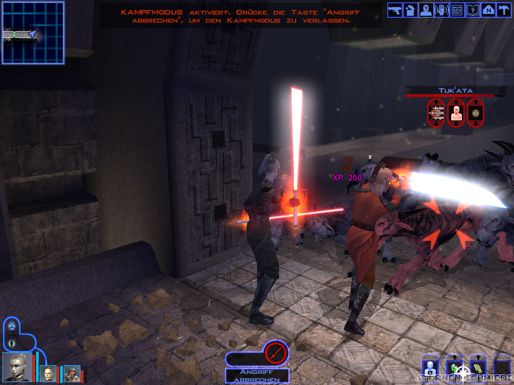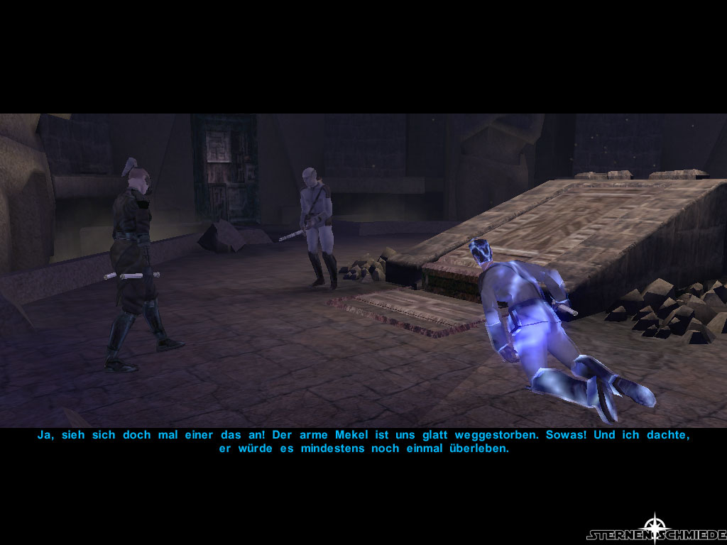 Sollte Mekel auch noch den Kampf überlebt haben, könnt ihr ihn überzeugen, sich von der Dunklen Seite abzuwenden. Oder ihn töten. Habt ihr euch für eine Tat entschieden, durchsucht Joraks Überreste. Ihr dürftet 450 Credits, einen Opila Kristall und eine Sith Tafel finden.