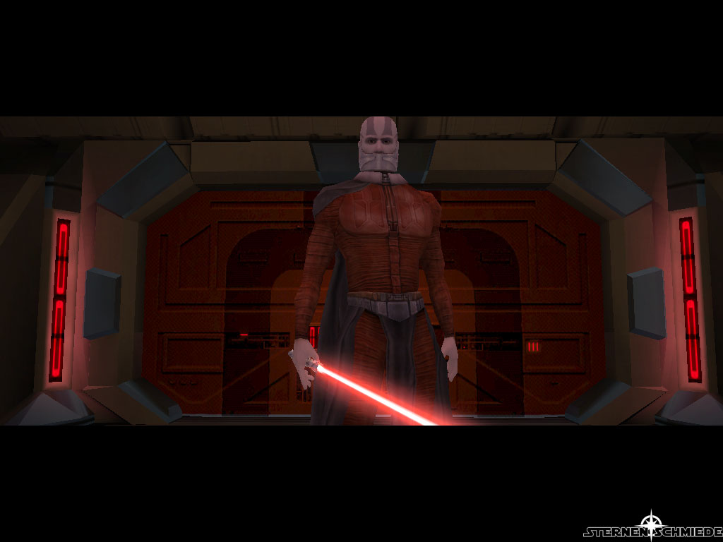 Am Ende der Rampe trefft ihr nämlich auf Darth Malak (4). Nachdem er euch über eure wahre Natur aufgeklärt hat, setzt er eure Gefolgsleute (Bastila und Carth) außer Gefecht. Wodurch ihr ihm alleine gegenübertreten müsst. Dies ist einer der schwersten Kämpfe im Spiel. Glücklicherweise müsst ihr Darth Malak aber nicht die gesamten Trefferpunkte entrauben. Es reicht wenn ihr ihm gut 3/4 entzieht. Was jedoch schon schwer genug ist, da er als erstes bereits seinen Verbesserten Machtwiederstand wirkt. Diesen oder die höhere Machtimmunität solltet ihr am Besten ebenfalls als erstes anwenden. Anschließend sind Schilde und andere Unterstützungskräfte dran. Attackiert ihn danach mit allem was ihr zu bieten habt. Sind die 60% überschritten, wirft er euch mit einem Machtwirbelsturm zurück und flieht.