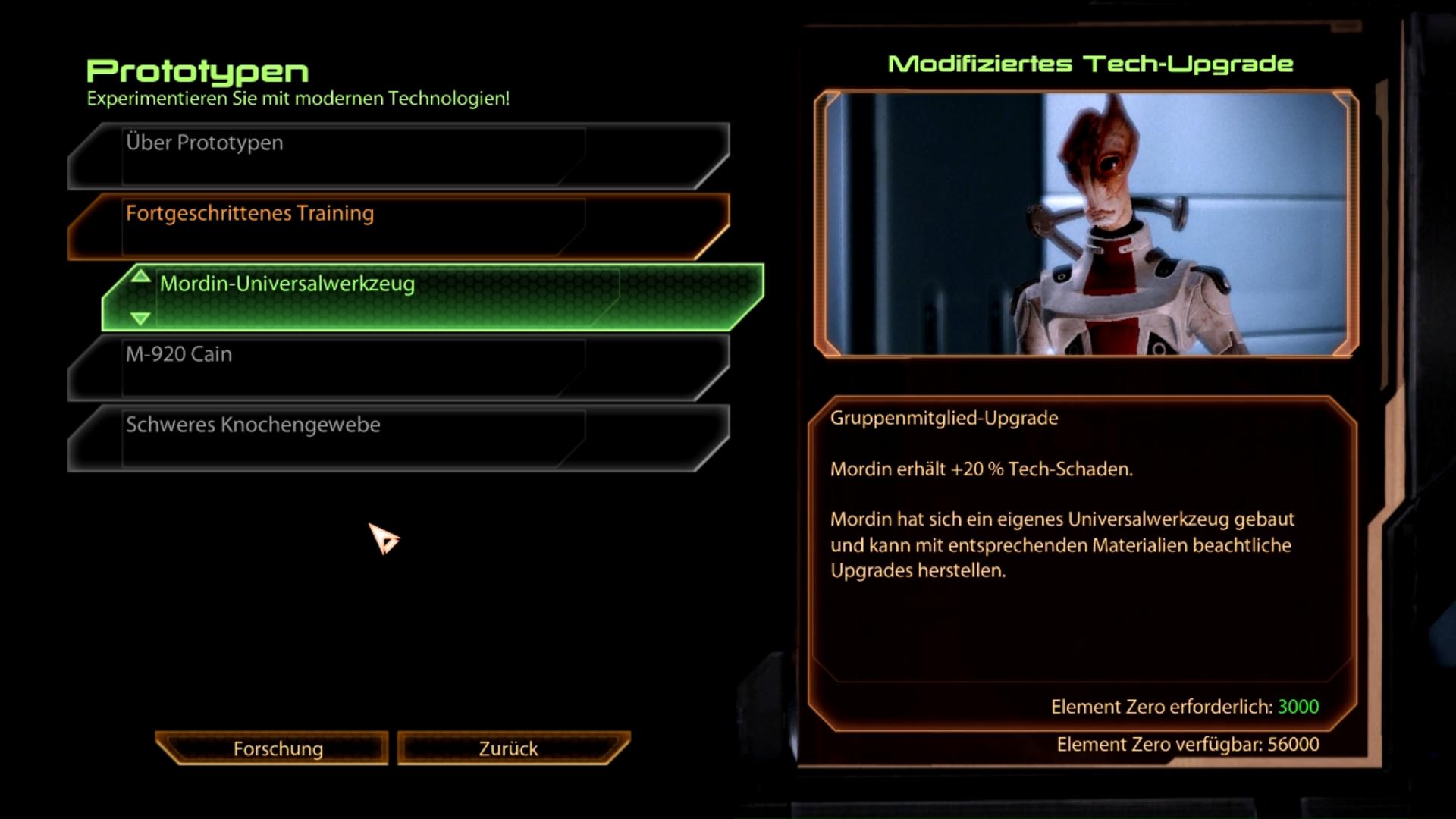 - Fundort: Sobald Dr. Mordin Solus als Squad-Mitglied angeworben wurde (Dossier: Der Professor) befindet er sich bei der Forschungsstation im Tech-Labor. Sprecht ihr Mordin auf Upgrades an, schlägt er euch dieses Forschungsprojekt vor.