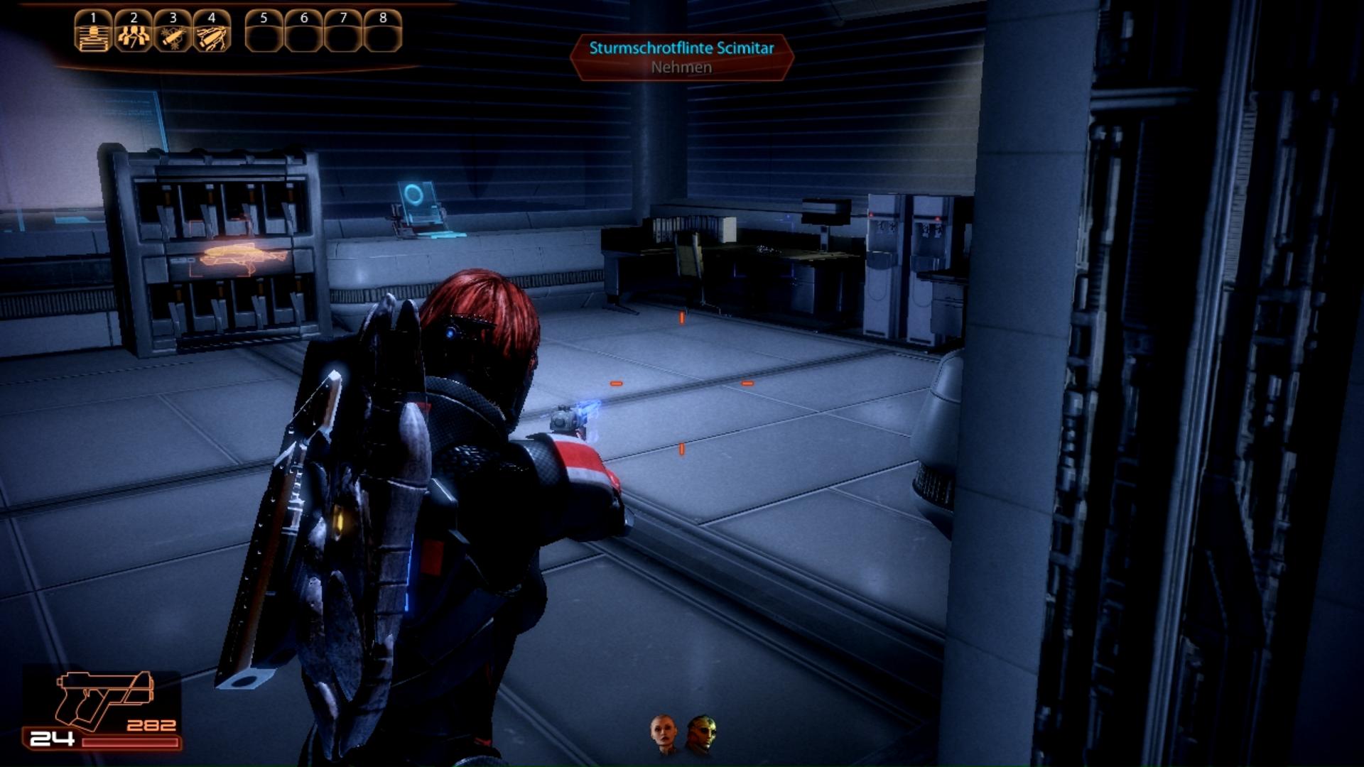 Fundort: Kann während der Samara Akquirierungs-Mission ("Dossier: Die Justikarin") auf Illium gefunden werden (verfügbar ab dem 3. Hauptgeschichtsabschnitt / Horizon). Die Scimitar Sturmschrotflinte liegt auf einem Schreibtisch ganz am Anfang der Eclipse Basis. Beseitigt die erste Gruppe, nachdem ihr aus dem Fahrstuhl gekommen seid und geht durch die Tür hinter ihnen. Dadurch steuert ihr automatisch auf den Tisch mit der Schrotflinte zu.