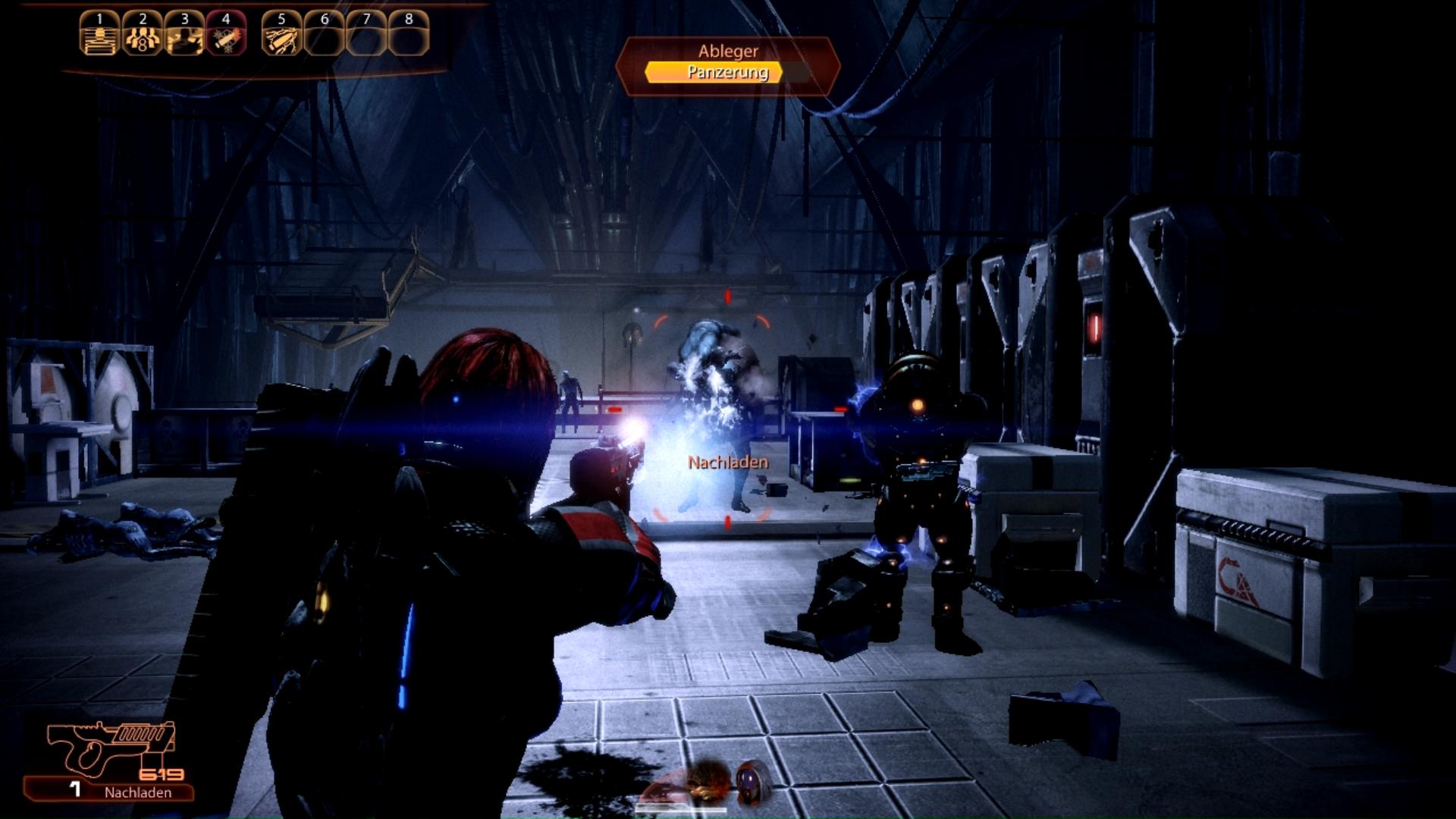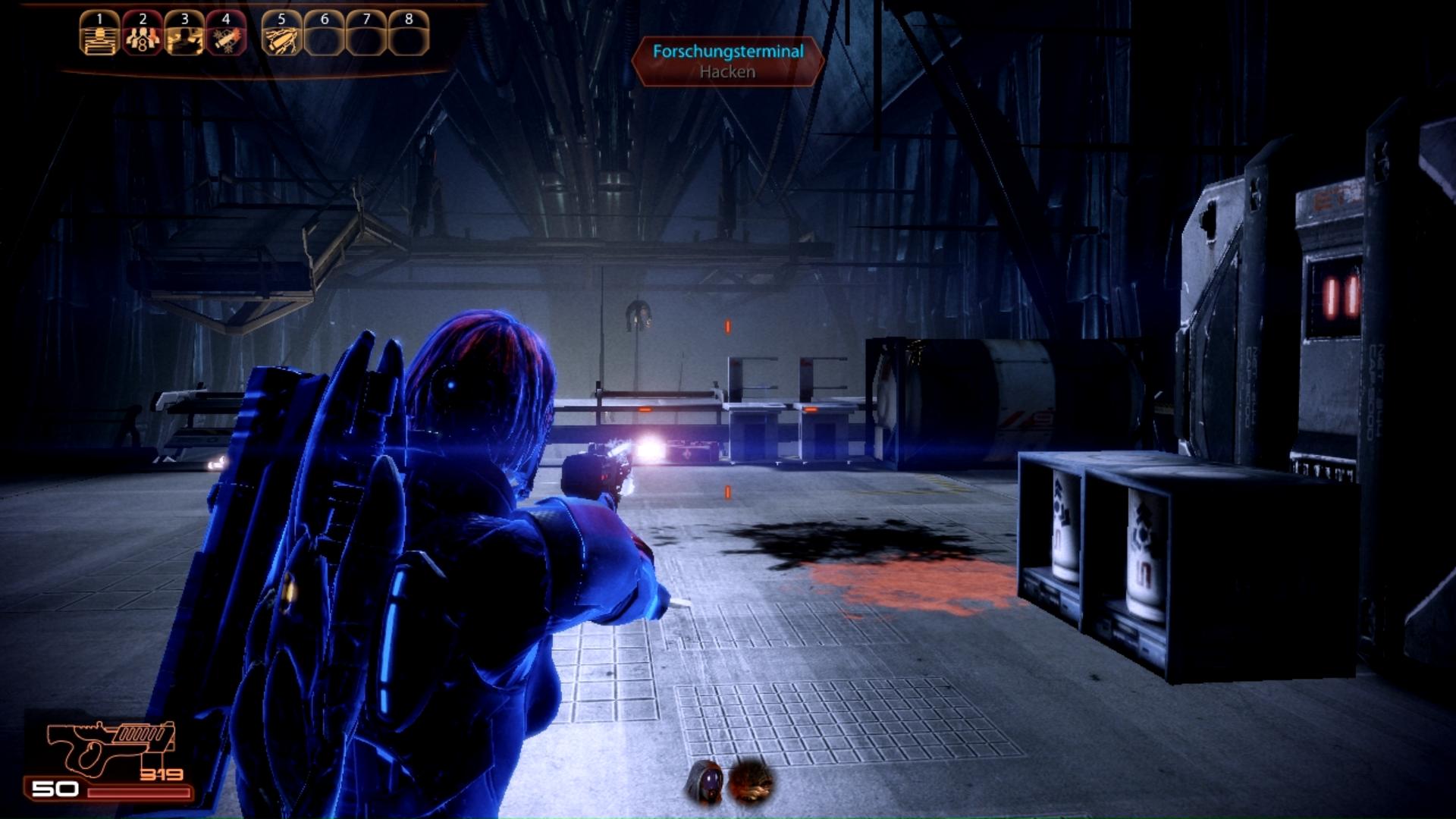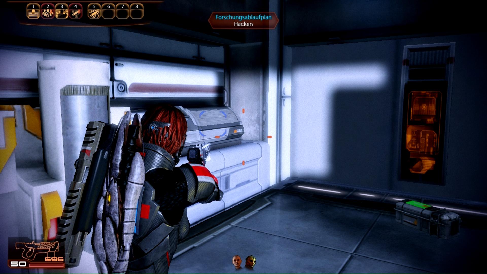 Habt ihr dadurch dann vom Schicksal der MSV Strontium Mule im Arinlarkan System im Omega-Nebel erfahren, könnt ihr problemlos andocken. Die Blue Suns machen euch jedoch das Leben schwer. Aktiviert die Verteilersicherheitskonsole, um die meisten Türen zu entriegeln, Kämpft euch dann bis zur Brücke durch und erledigt dort Captain Vorhess. Anschließend gibt es einen kleinen Hinterhalt, der die letzten Türen öffnet. Von der Brücke aus könnt ihr dann über die Haupthalle ans andere Ende des Schiffes. Haltet euch im Gang links und gelangt so zum Missionsziel, der Ladung. Genau links daneben könnt ihr einen Forschungsablaufplan hacken, der bringt euch wiederum die Forschungsdaten für das schwere Hautgewebe.