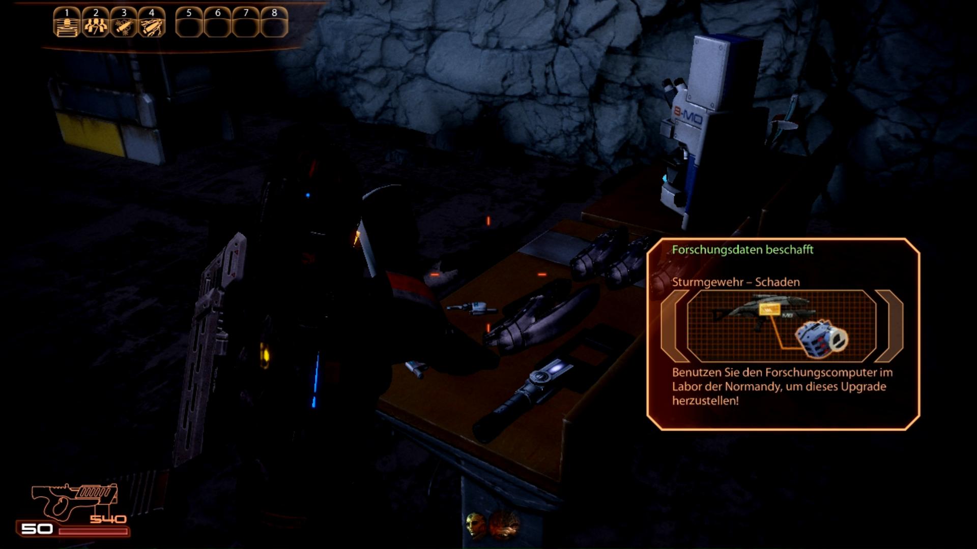 Modifiziertes Sturmgewehr liegt bei der Turianischen Leiche hinter der ersten Blue Suns Barrikade (neben dem ersten Apartment) in der Quarantänezone.