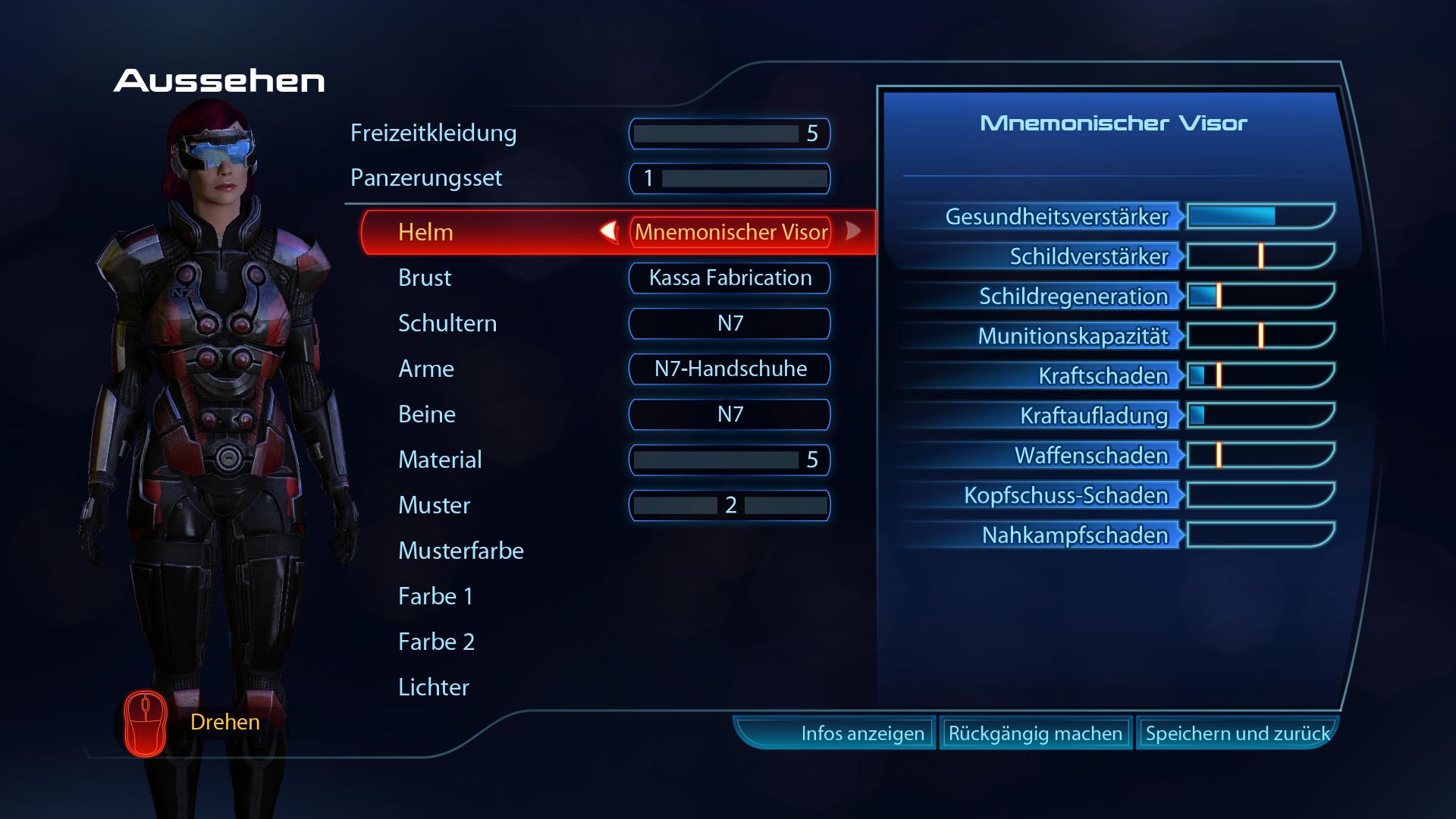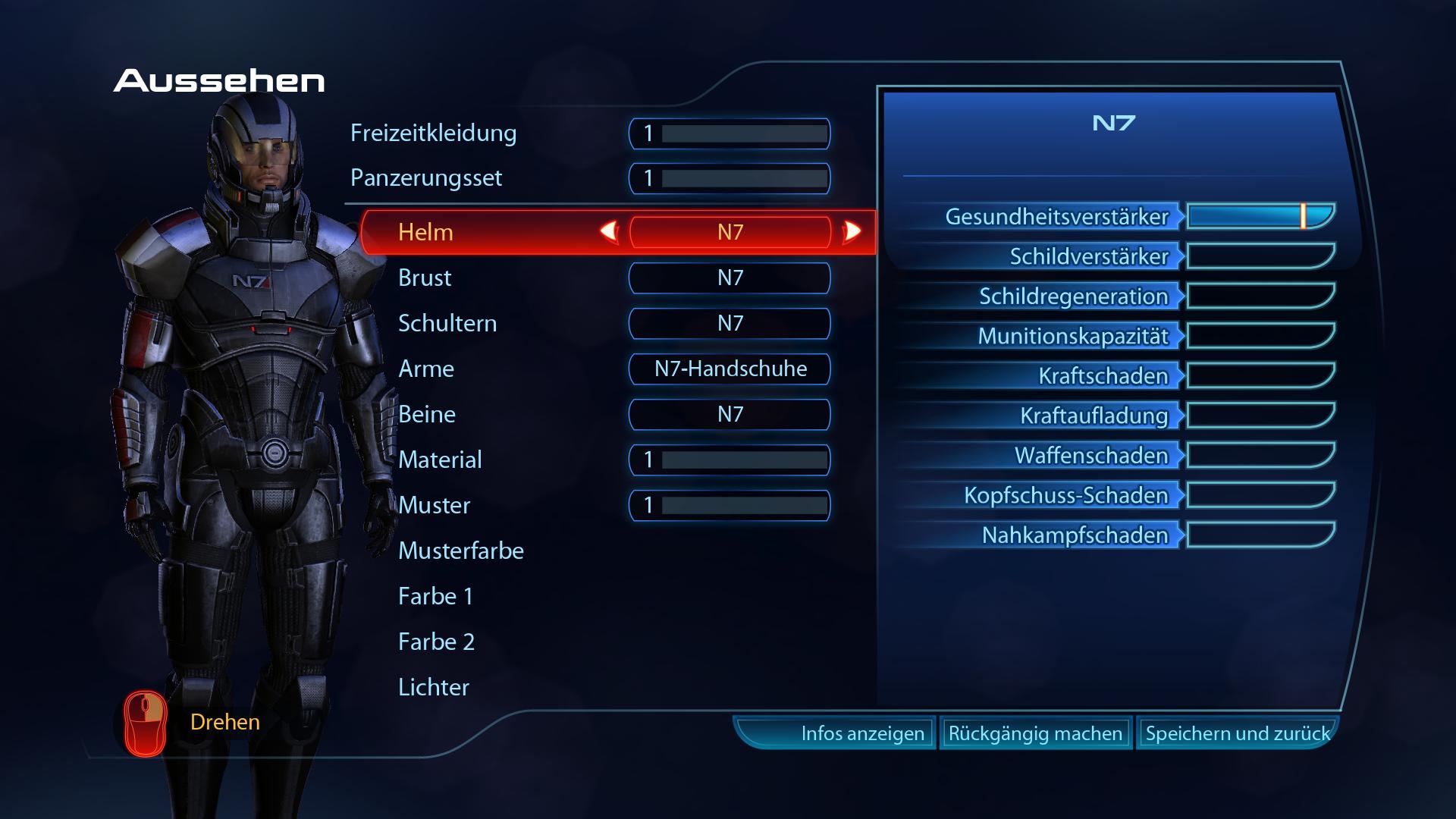 Fundort:Der N7 Helm ist die Standardausrüstung von Commander Shepard. Der Commander trägt den Helm von Anfang an.