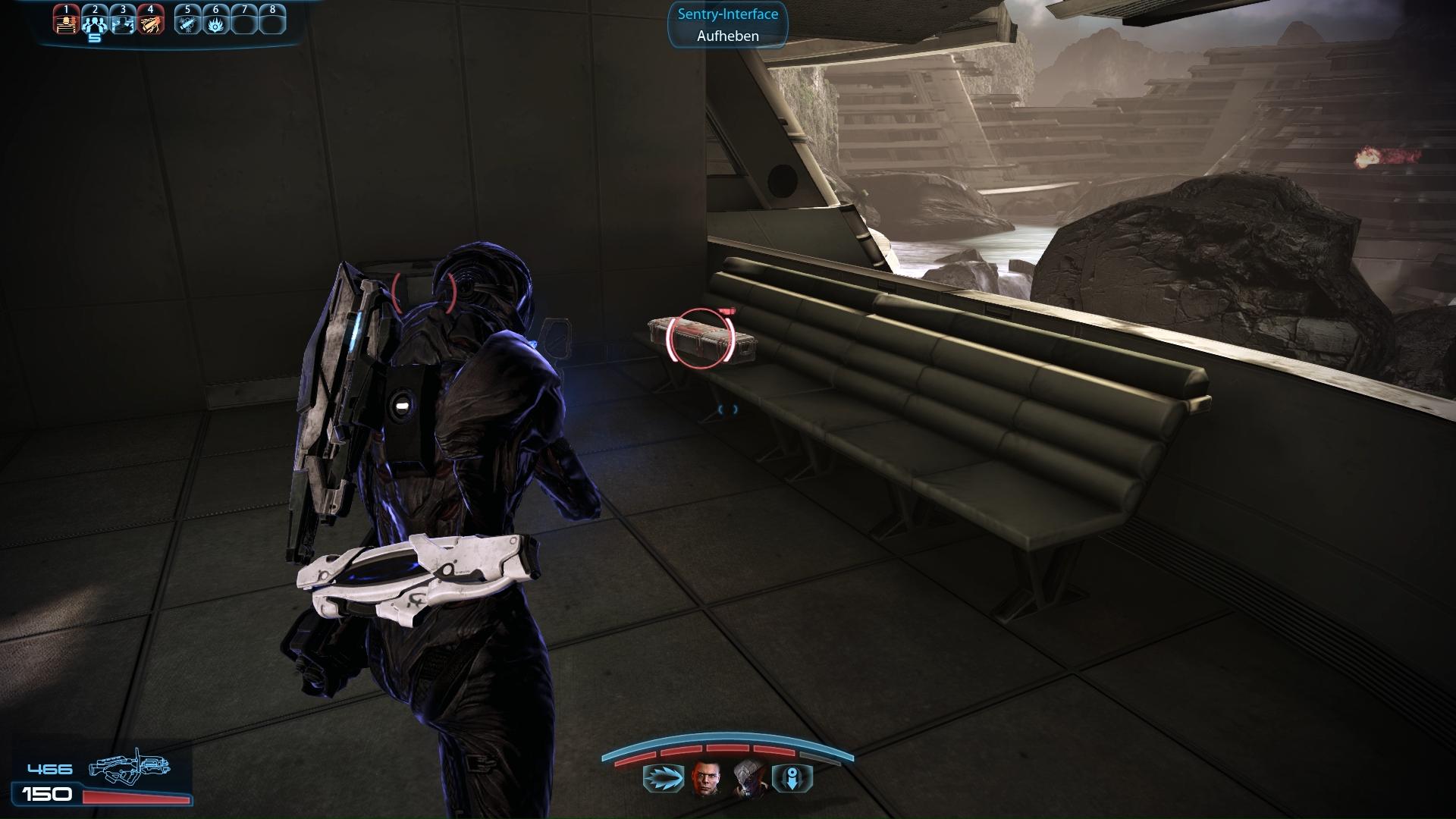 Fundort:Das Sentry Interface findet ihr wie die Armax-Arsenal-Beinschienen in der dritten Hauptgeschichtsmission, Priorität: Sur'Kesh. Auf dem Weg zwischen dem ersten Quarantänekontrollpunkt des Tanks und dem zweiten, müsst ihr durch den "Speziesbeobachtungsbereich", der spezielle Autorisation erfordert. Lauft in dieser Raum ganz bis hinten durch, an der Leiter hinten rechts vorbei und in die kleine Sackgasse dahinter. Auf der Couch dort liegt der Koffer mit dem Sentry Interface.