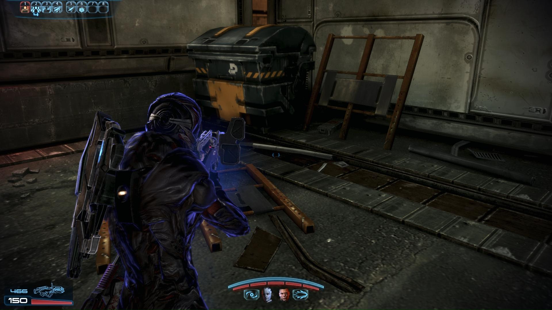 Der Kondensator-Helm selbst liegt gut versteckt neben einer Mülltonne. Ihr könnt ihn am besten einsammeln, nachdem die Zivilisten gerettet sind und das Shuttle auf euch wartet. Geht von der Landezone aus links am Gebäude 52. Somit lauft ihr aufs Gebäude 22 zu. Widerum links davon ist ein Hof, auf dem ihr zunächst die "Dienstmarke" (Dog Tags) für den Botschafter auf der Citadel findet. Lauft weiter über den Platz, bis auf der rechten Seite das Gebäude 97 erscheint. An der Hauswand steht eine Mülltonne und daneben liegt wiederum der Helm.