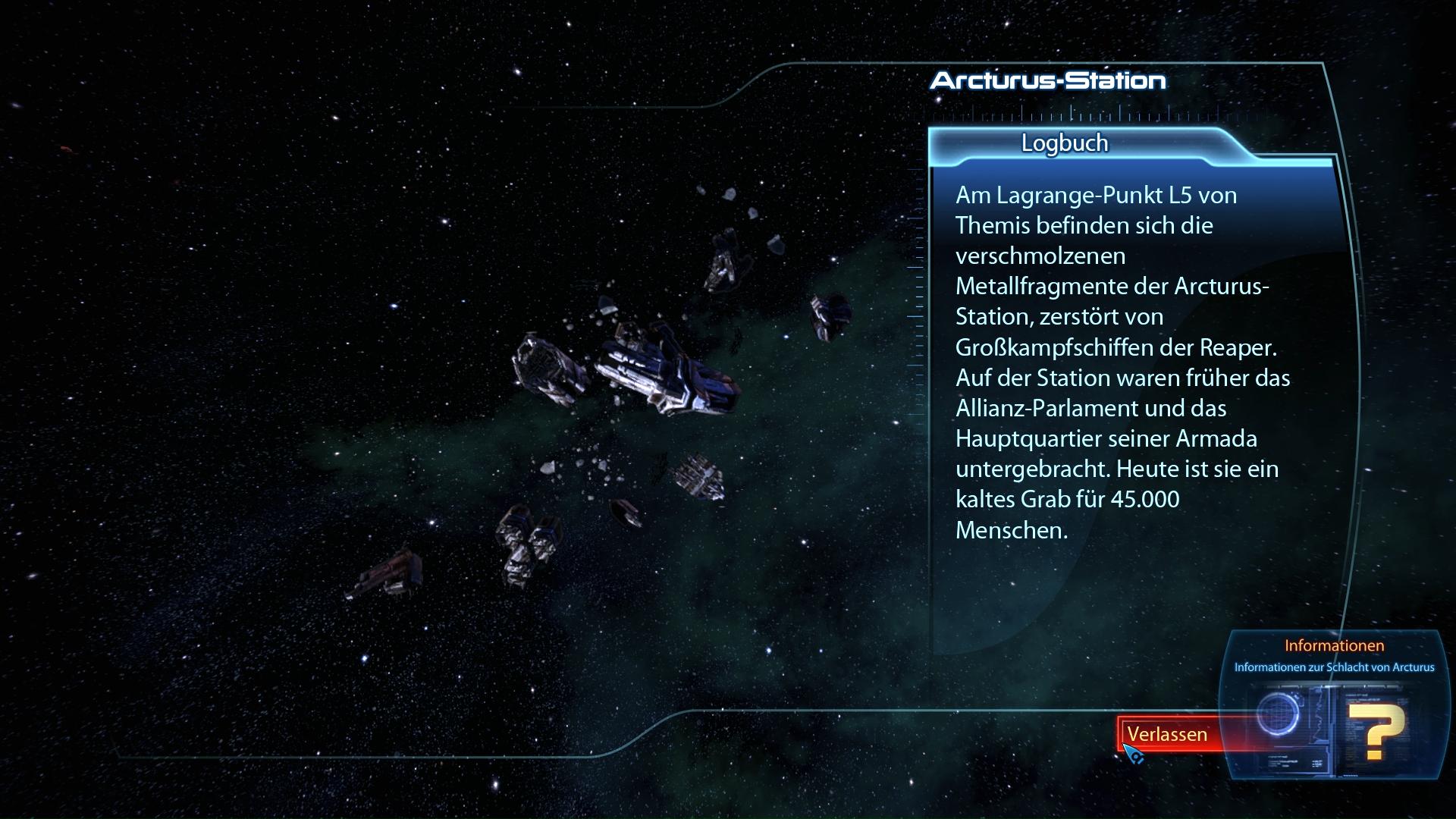 Fundort:Generell ist dieses Upgrade nach der Hauptgeschichtsmission "Priorität: Sur'Kesh" erreichbar. Ihr müsst jedoch zusätzlich die Mission "Attika-Traverse: Die Rachni" oder "Tuchanka: Turianischer Zug" abgeschlossen haben, damit dar Arcuturs-Strom Cluster (Arcturus Stream) freigeschaltet wird. Fliegt dort im ersten System (Arcturus) zu den Überresten der Arcturus Station und scannt sie. Am Upgrade Terminal in Liaras Büro könnt ihr euch anschließend für eine der Varianten entscheiden.