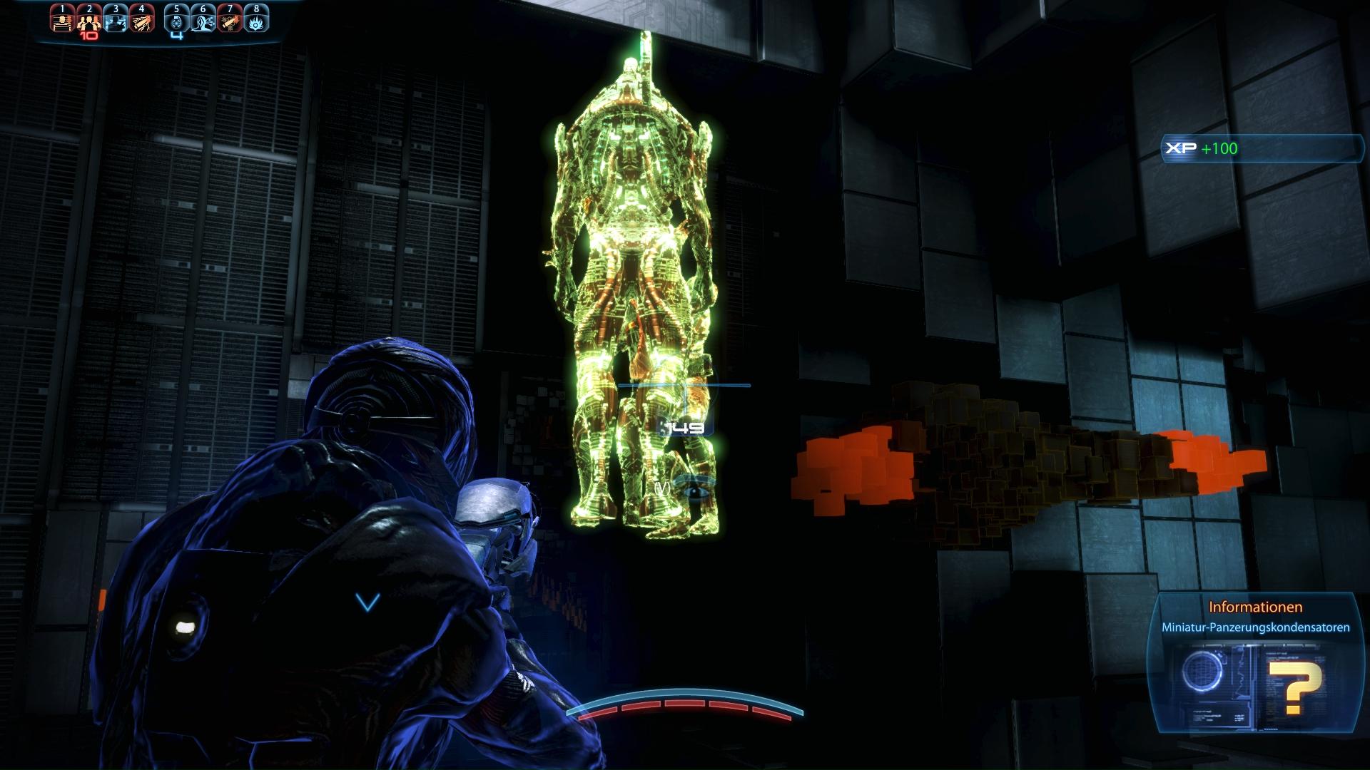 Fundort:Wie das "Verbesserte Geth-Widerstände" Upgrade, ist auch dieses während des Trips in die virtuelle Welt der "Rannoch: Geth-Jägerstaffeln" Mission zu bekommen. Also zweichen der Zerstörung des Geth-Schlachtschiffs und der "Priorität: Rannoch" Mission. Ab dem zweiten Zugriffspunkt hat sich der Reaper-Code angepasst und es wird etwas schwieriger die Codefragmente zu befreien. Dennoch könnt ihr beim Betrachten des ersten Informationsknotens das Miniatur-Panzerungskondensatoren Upgrade erhalten.
