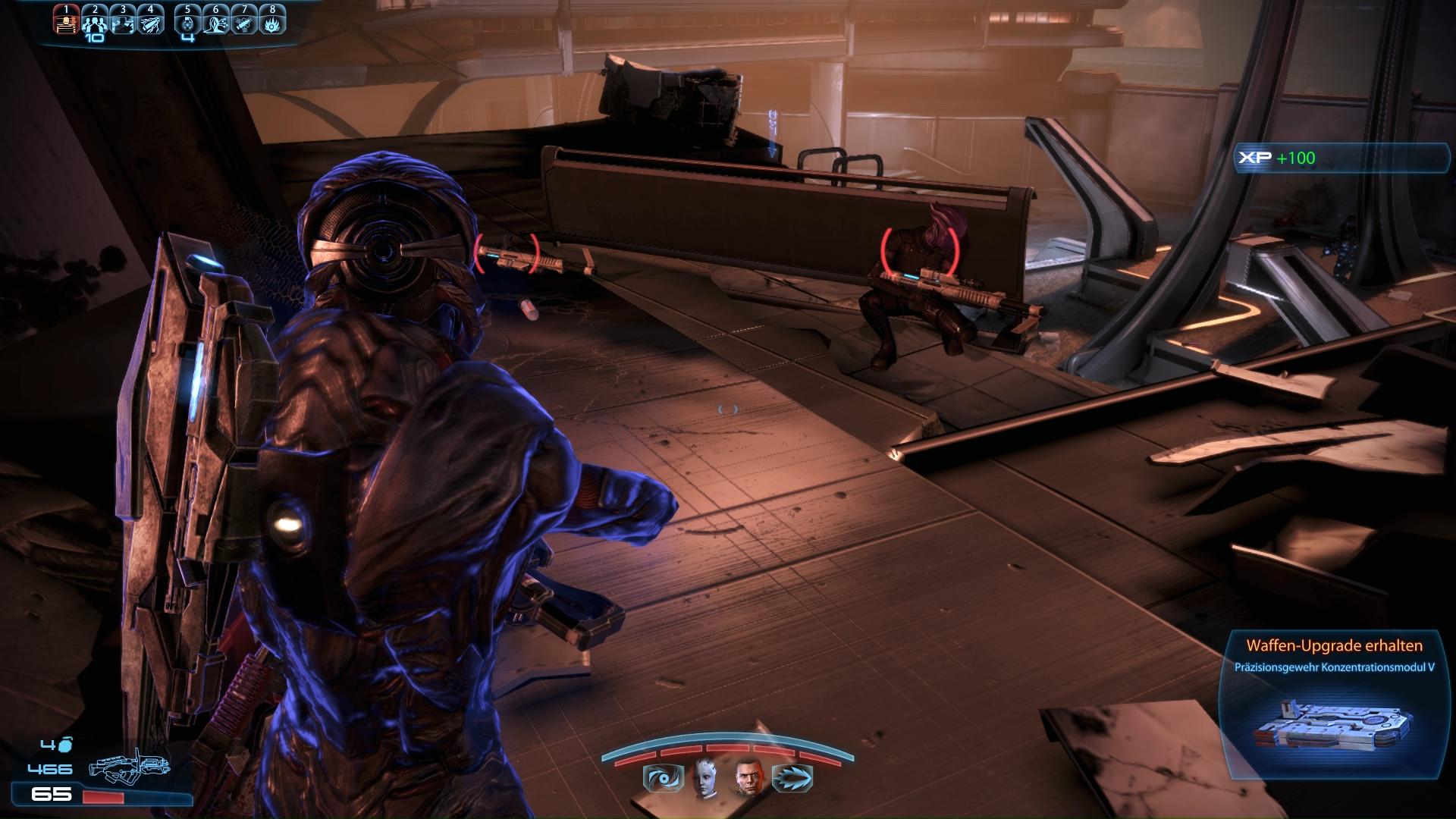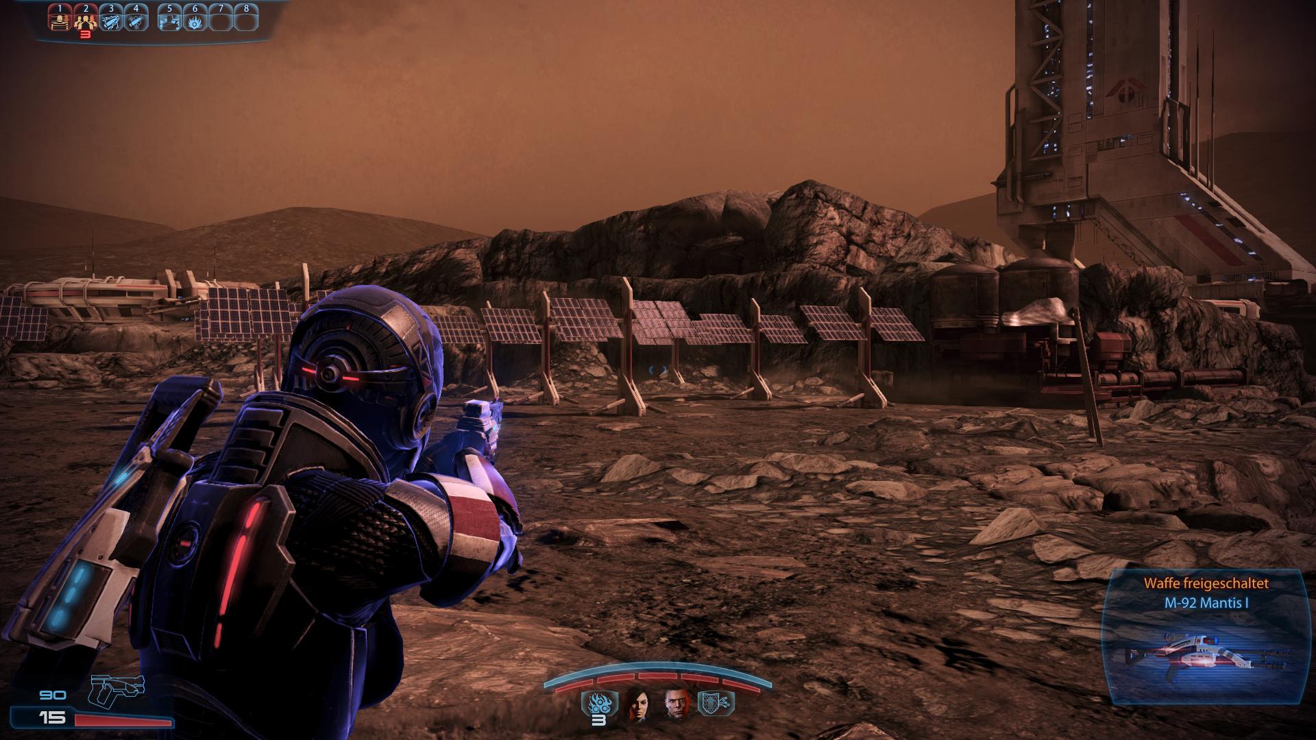 Fundort:Das M-92 Mantis Scharfschützengewehr bekommt ihr direkt bei der Landung auf dem Mars im Prolog von Mass Effect 3. Je nach Klasse seit ihr bereits beim Ausstieg aus dem Shuttle damit ausgerüstet. Andernfalls liegt es wenige Meter vom Shuttle entfernt. Geht an dem Solar-Panel-Feld vorbei zu den Rohren und springt dort runter. Auf der rechten Seite liegen drei Leichen, die Liara als Allianz Soldaten (Sergeant Reaves) identifiziert. Dort findet ihr das Mantis Gewehr.