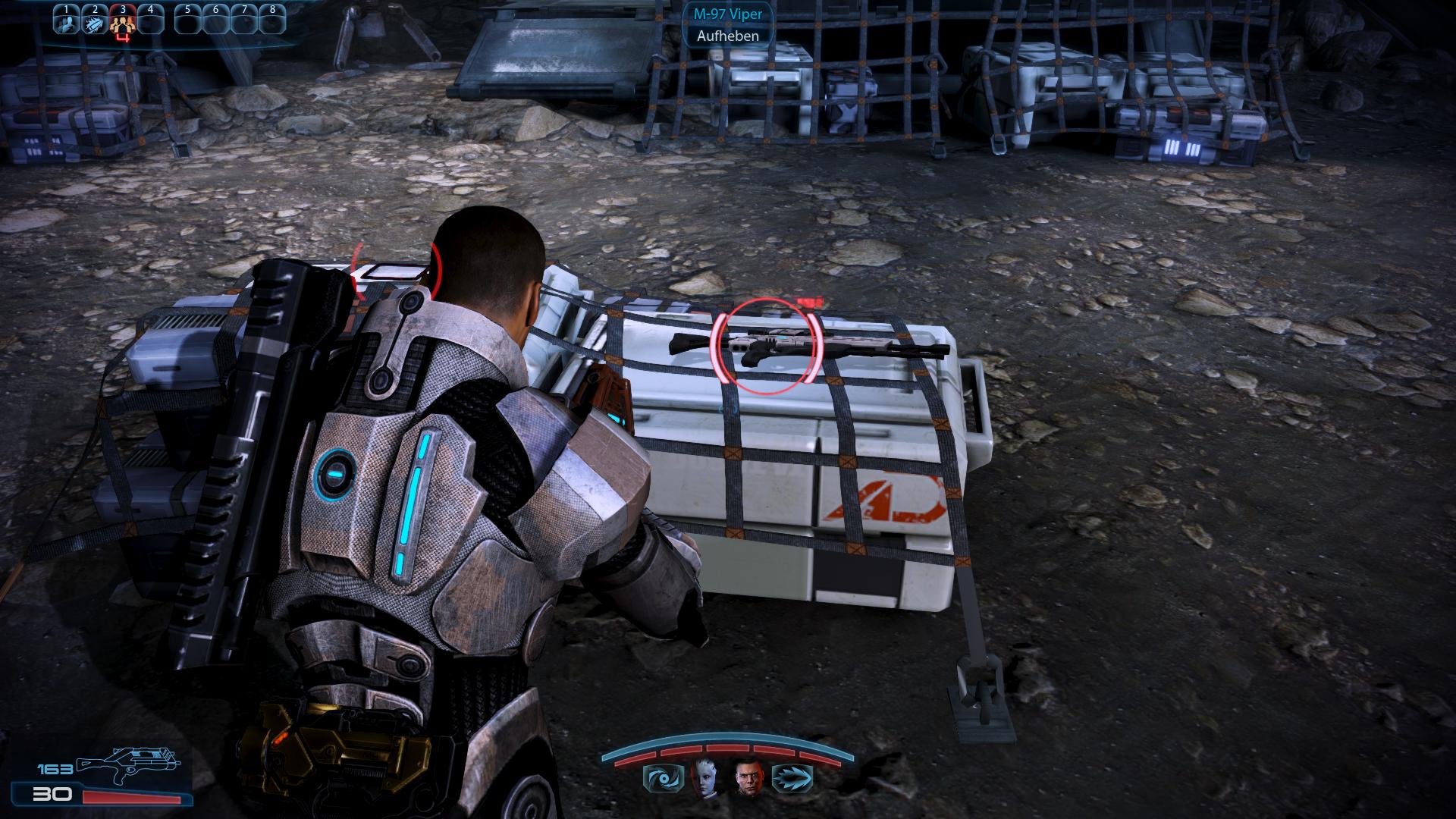 Fundort:Das M-97 Viper findet ihr während der "Priorität: Palaven" Mission kurz nach der Landung auf dem Mond Menae. Lauft vom Shuttle zum Eingang der turianer Basis. Noch bevor ihr rechts zum Kommandostand von General Corinthus geht, findet ihr das Scharfschützengewehr auf ein paar Kisten in der Mitte des Weges liegen.