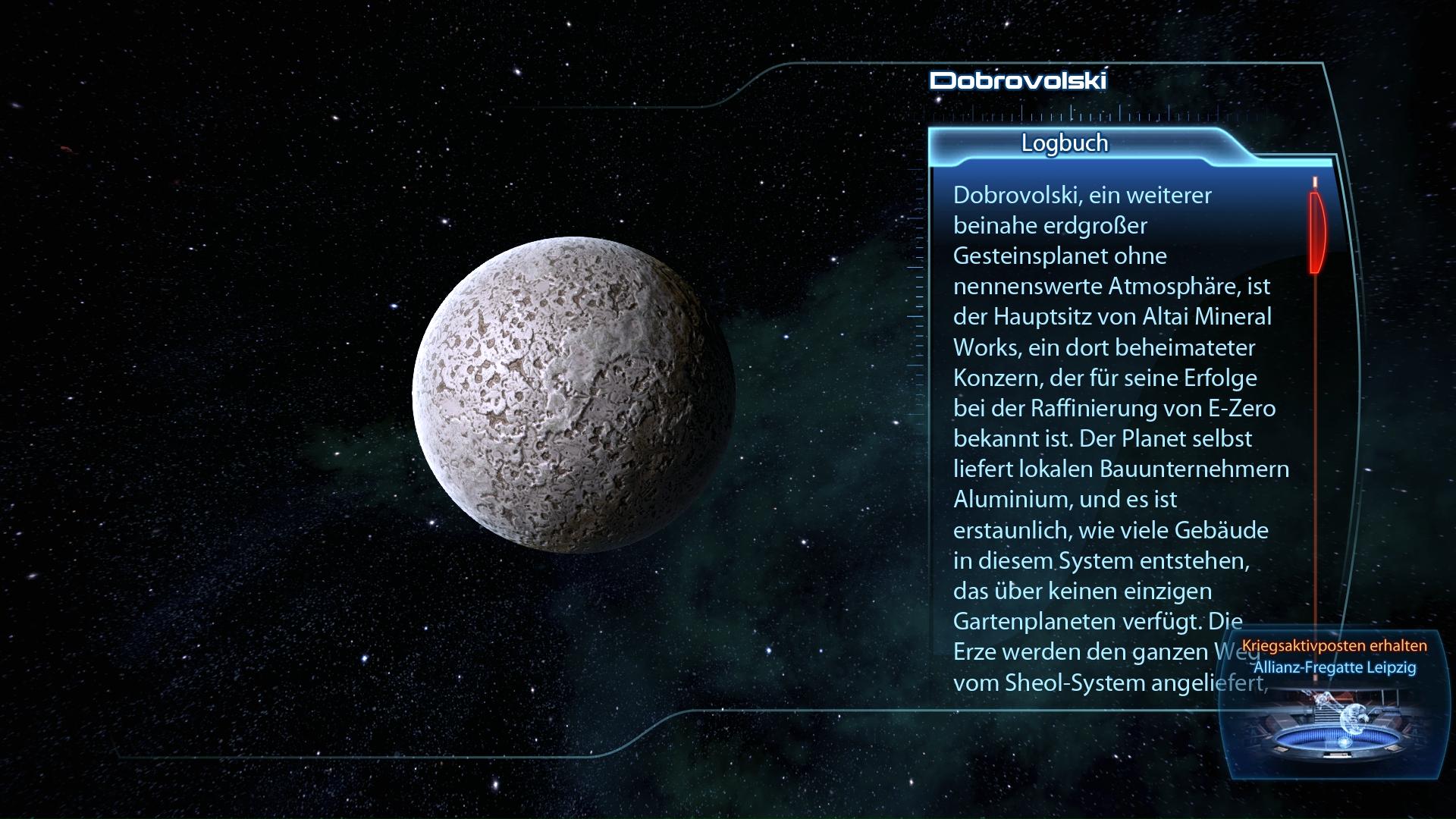 Fundort:Mit Abschluss der "Priorität: Rannoch" Hauptgeschichtsmission ist es möglich in den Hades-Nexus Cluster einzudringen. Fliegt dort ins Pamyat System und scannt den zweiten Planeten Dobrovolski, um die Allianz-Fregatte Leipzig für diesen Kriegsaktivposten zu bekommen.