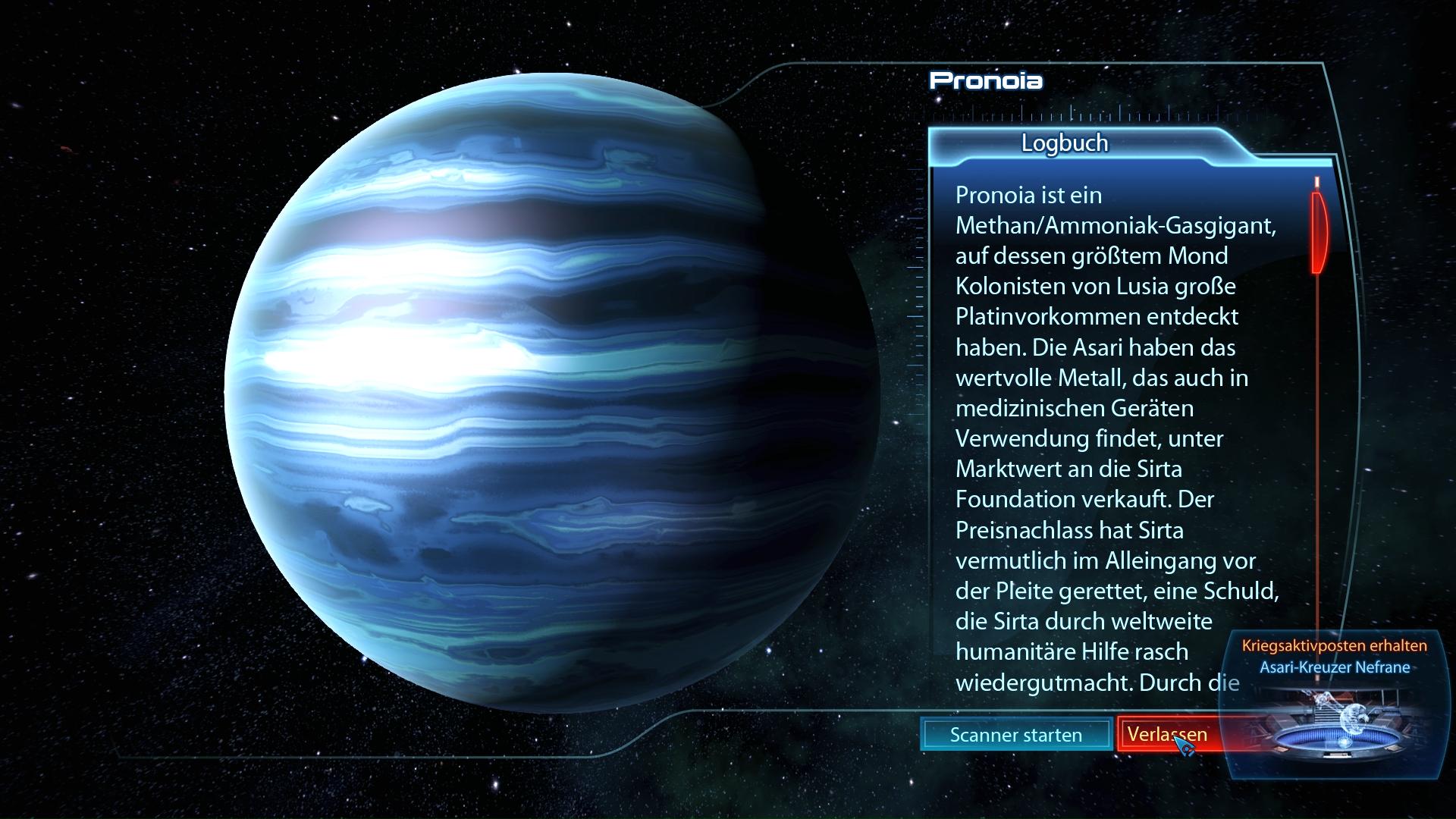 Fundort:Tomaros ist eines der vielen System des von Asari kontrollierten Athene-Nebels, welcher nach der "Piorität: Citadel (II)" Mission zugänglich wird. Manövriert dort zum Planeten Pronoia und scannt ihn (Pronoia, Tomaros, Athena Nebula).