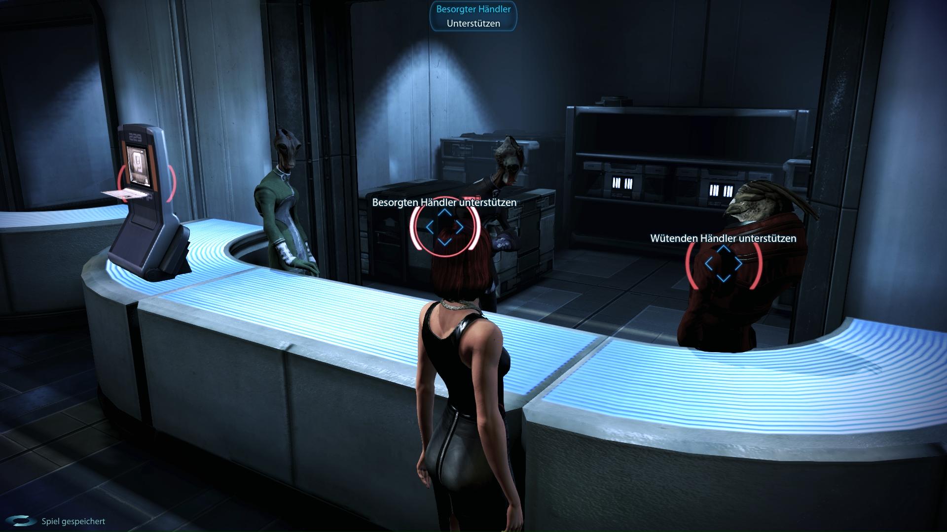 Fundort:Nach der Schlacht gegen die Cerberus-Truppen auf der Citadel (Priorität: Citadel) könnt ihr beim Aeghor Munition Terminal am Medirian Place einen "Besorgten Händler" und "Wütenden Händler" streiten hören. Unterstützt ihr den besorgten Händler und autorisiert anschließend die Miliz am Spectre-Terminal erhaltet ihr diesen Kriegsaktivposten.