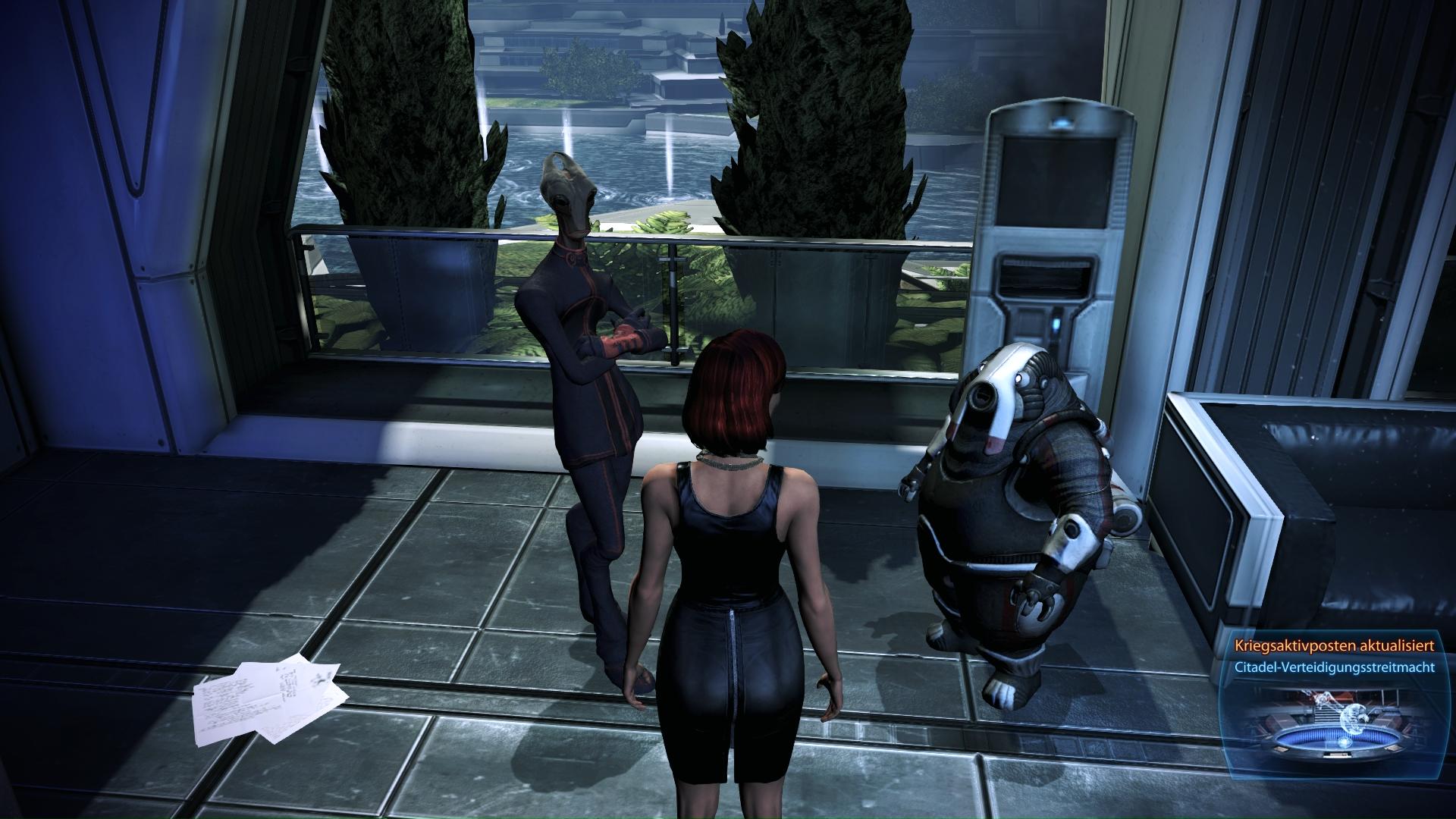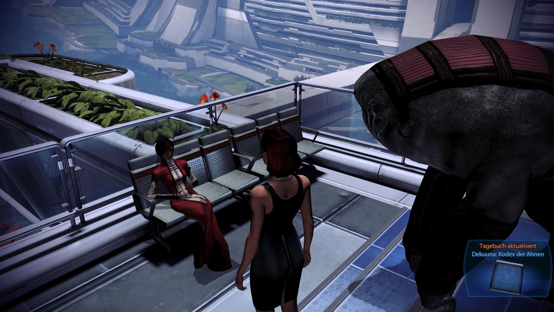 Beschreibung:Der Flug durch das Asari-Gebiet ist für Leute, die zu Familie und Freunden auf Thessia wollen, erleichtert worden. Daraufhin haben zahlreiche Flüchtlinge die Citadel verlassen, was die dortige Sicherheit verbessert hat.