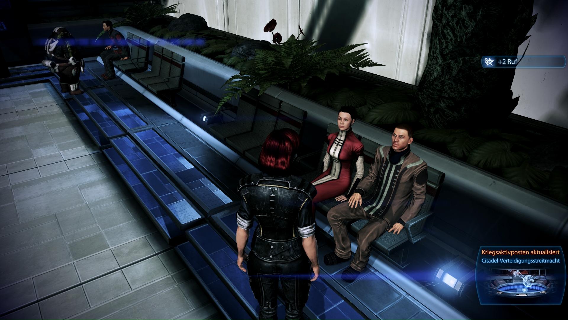 Fundort:Auf den Bänken des Präsidiumsunterhauses treft ihr zwischen den Priotität: Palven und Citadel (II) Missionen das streitende Paar aus Mass Effect 1 und 2 wieder. Sie streiten darüber, was sie jetzt im Krieg mit ihrem Sohn Jake machen. Sprecht sie an und dieser Kriegskativposten wird der Liste hinzugefügt.