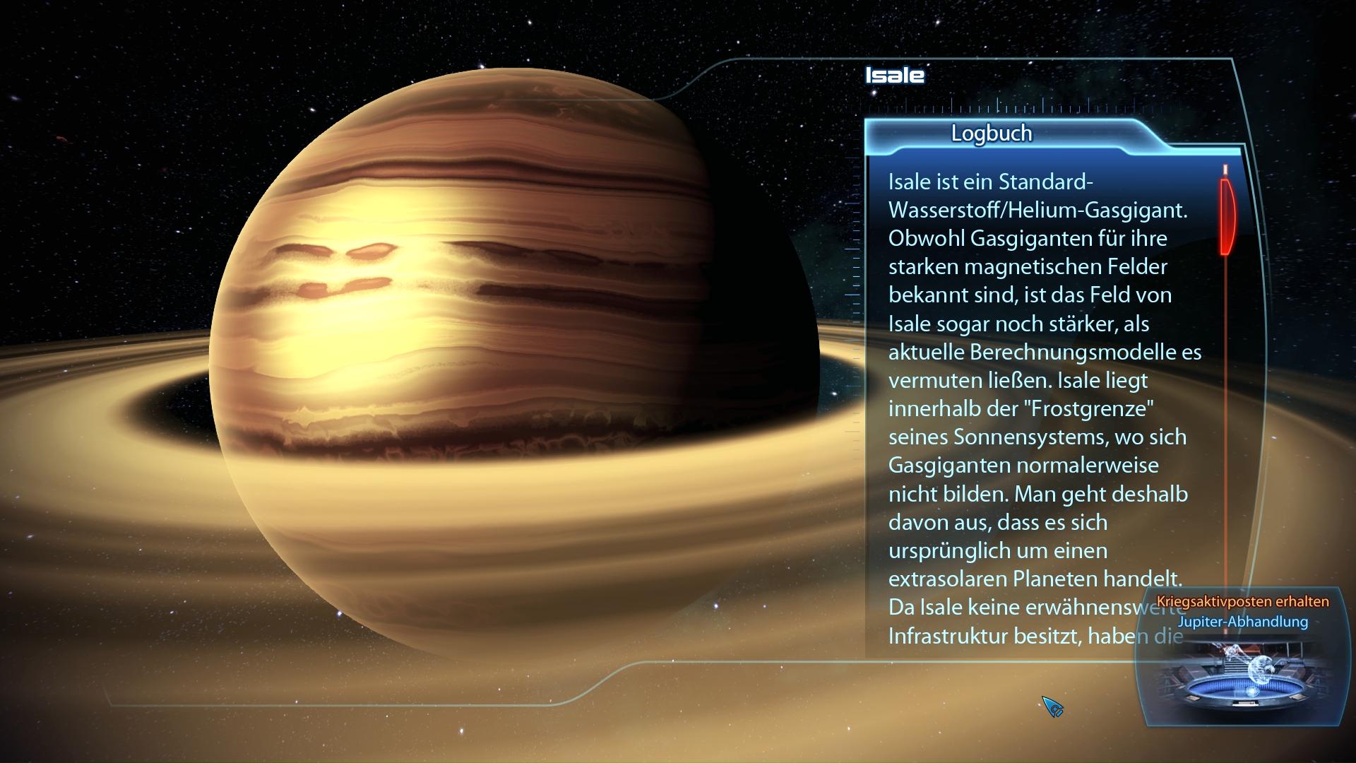 Fundort:Der Pylos-Nebel ist der erste Cluster, den ihr im Verlauf des Leviathan DLC aufsuchen müsst. Fliegt dort ins erste System, Nariph, und scannt den Saturn ähnlichen Planeten Isale (Isale, Nariph, Pylos Nebula), um den Jupiter-Abhandlung Kriegsaktivposten zu erhalten.