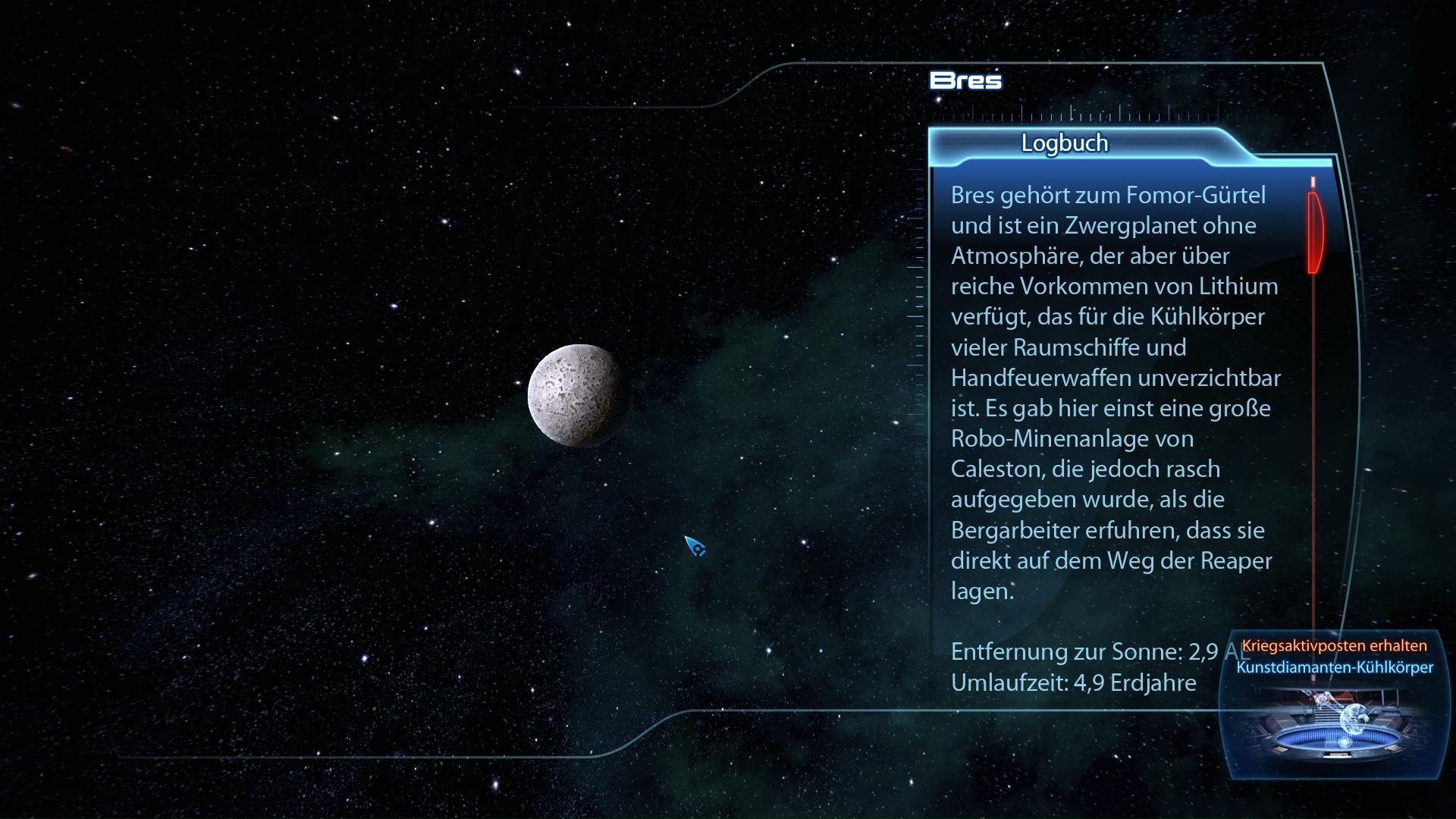 Fundort:Das Caleston Rift hat nur ein einziges System: Balor. Im Normalfall solltet ihr dieses gar nicht erkunden können und ebenso nichts auf dem Planeten Bres finden. In manchen Fällen ist das System aber auch ohne Leviathan DLC zugänglich. Mit dem DLC sollte es bereits nach "Priorität: Palaven" verfügbar sein und ihr so auf dem Planeten Bres den Kunstdiamanten-Kühlkörper Kriegsaktivposten finden können.