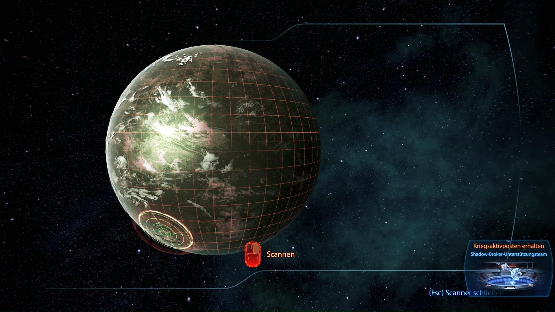 Fundort:Im Anschluss an die "Priorität: Thessia" Hauptgeschichtsmission bekommt ihr Zugriff auf den Sanduhr-Nebel. Fliegt dort ins Sowilo System und scannt den dritten Planeten, Hagalaz. Dort solltet ihr den Shadow-Broker-Unterstützungsteam Kriegsaktivposten erhalten.