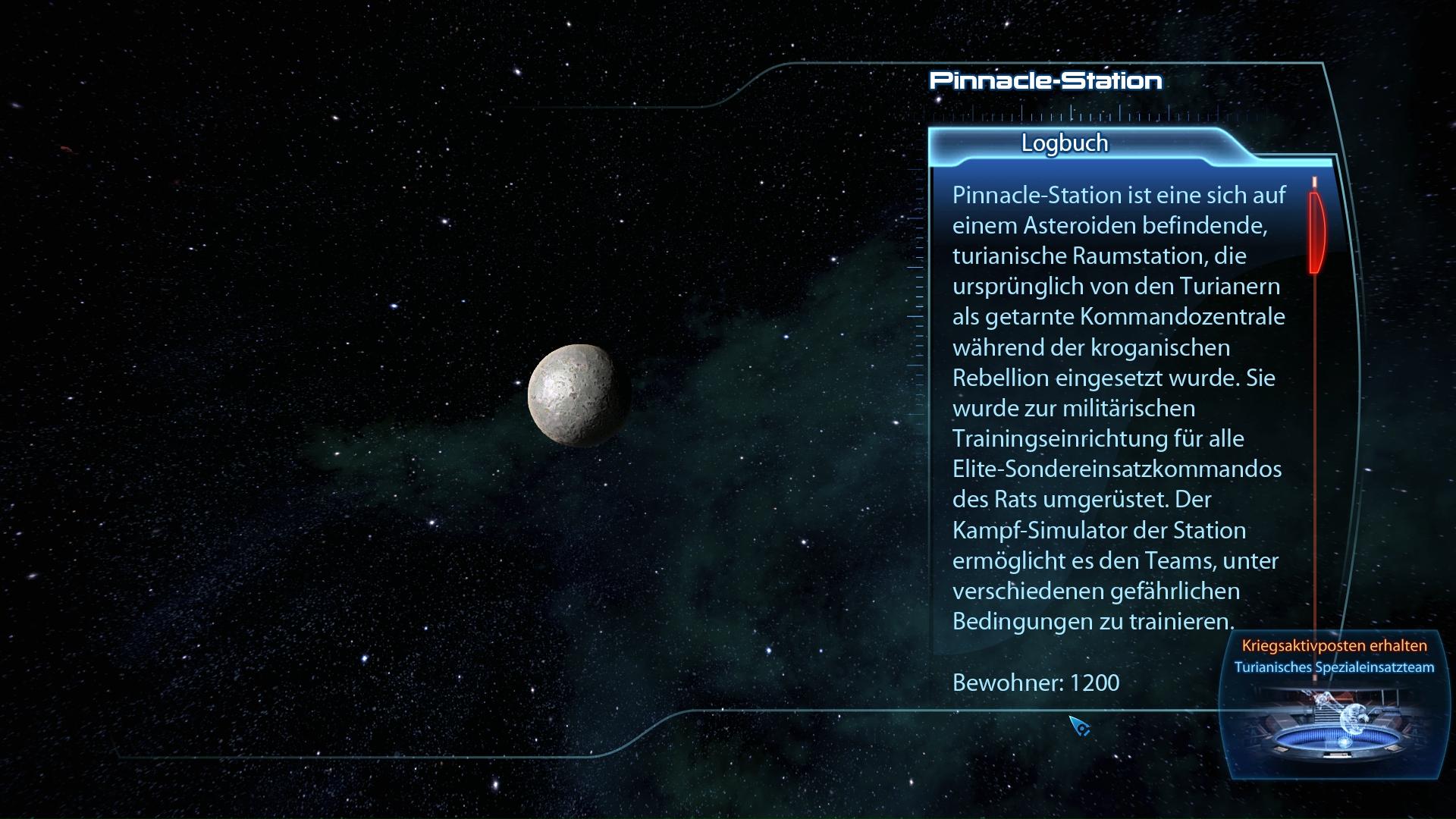 Fundort:Die Beseitigung des Geth-Schlachtschiffs (6. Hauptgeschichtsmission) schaltet den Argos Rho Cluster frei. Fliegt dort ins Phoenix System und scannt die gut markierte Pinnacle-Station. Damit gehört der Turianisches Spezialeinsatzteam Kriegsaktivposten euch.