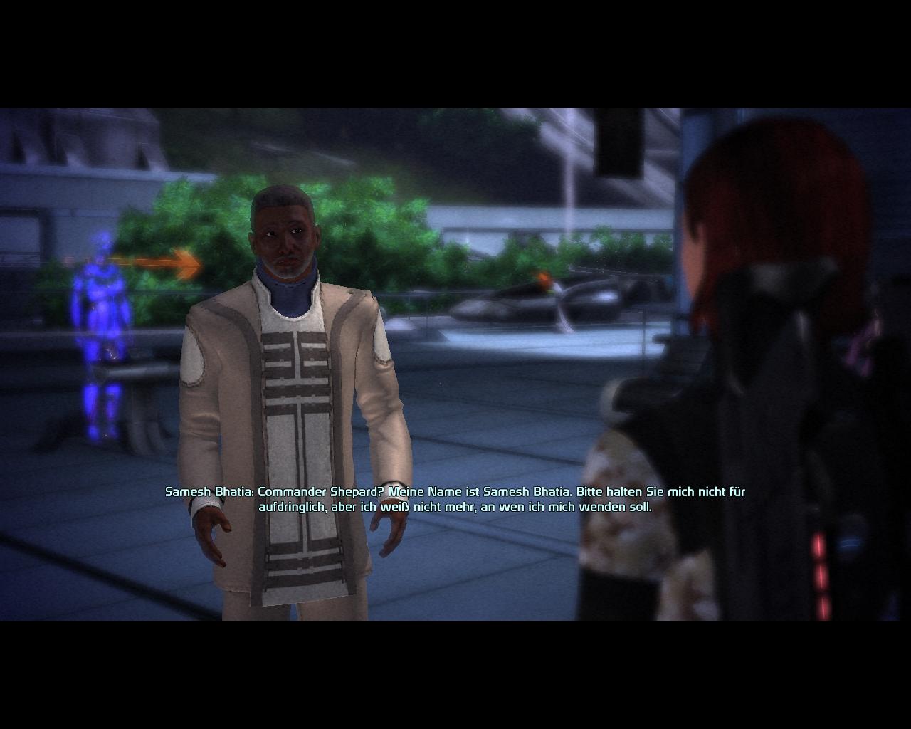Samesh Bhatia erscheint am Eingang der Botschaften sobald Commander Shepard mit Fist abgerechnet und Tali ihre Beweise an Botschafter Udina übergeben hat.