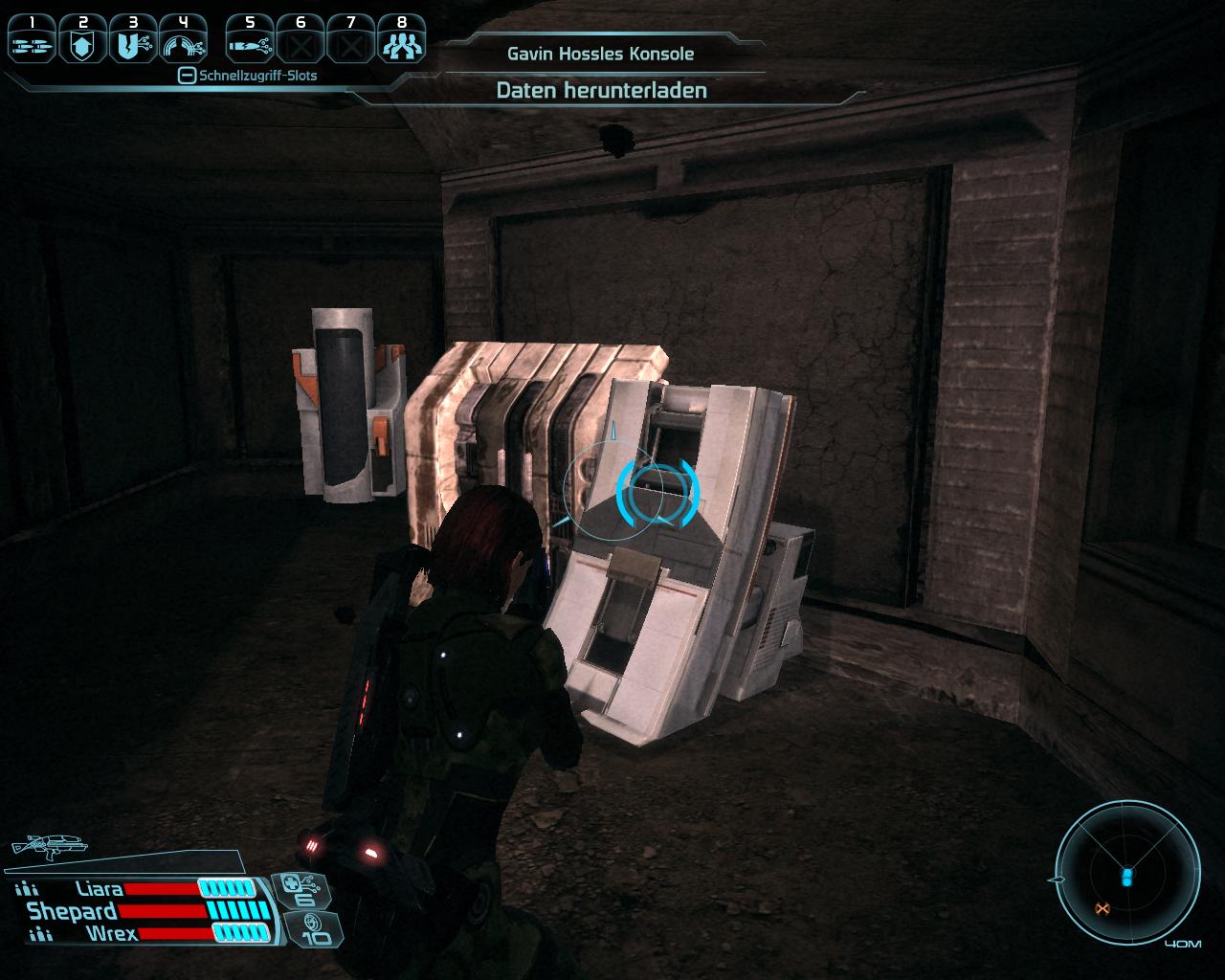 Der Auftrag ist eng verbunden mit den Geth-Angriff / Thorianer Missionen der Mass Effect Hauptquest. Zur Erfüllung müsst ihr zunächst dem Skyway weiter bis zum ExoGeni-Forschungszentrum im Norden folgen. Der Sprung in die Müllgrube führt euch zu Lizbeth Baynham und mit ihrem Ausweis an der ExoGeni VI vorbei zur zentralen Kammer der Hauptebene. Von diesem Raum mit vier Gängen (einer davon durch ein blaues Kraftfeld versperrt) aus, führt der westliche zur Türsteuerung Shuttle-Dock, was das Geth-Landungsschiff zerstört. Der östliche Weg hingegen führt in eine gut bewachte, schmale Sackgasse des Obergeschosses. Am Ende dieses Ganges steht Gavin Hossles Konsole. Sie wird jedoch von drei Kroganern bewacht. Verlasst den ExoGeni Komplex, nachdem ihr das Geth-Schiff vernichtet habt und kehrt zu Gavin in Flüchtlingslager zurück. Er belohnt euch für die Datenrettung mit Credits und Universalgel. Solltet ihr die Gelegenheit verpasst haben und Gavin Hossle nach der Vernichtung des Thorianers besuchen wollen, so findet ihr ihn in Zhu's Hope.