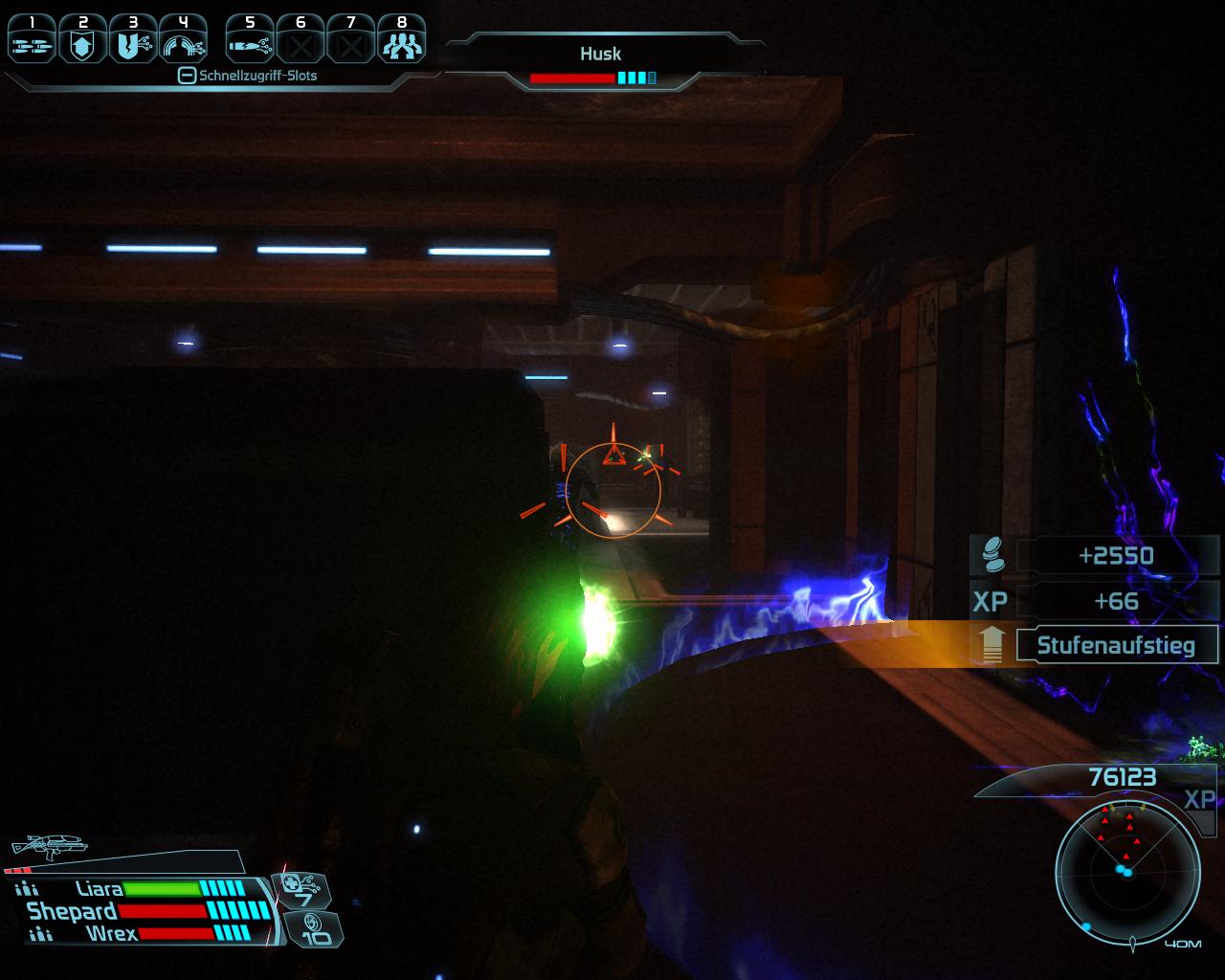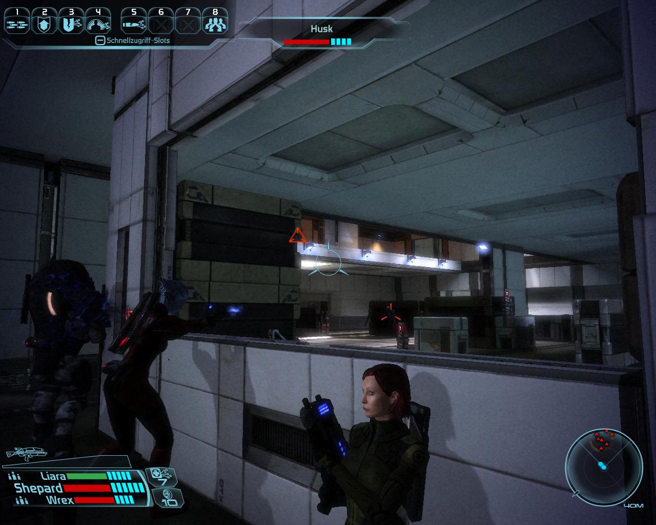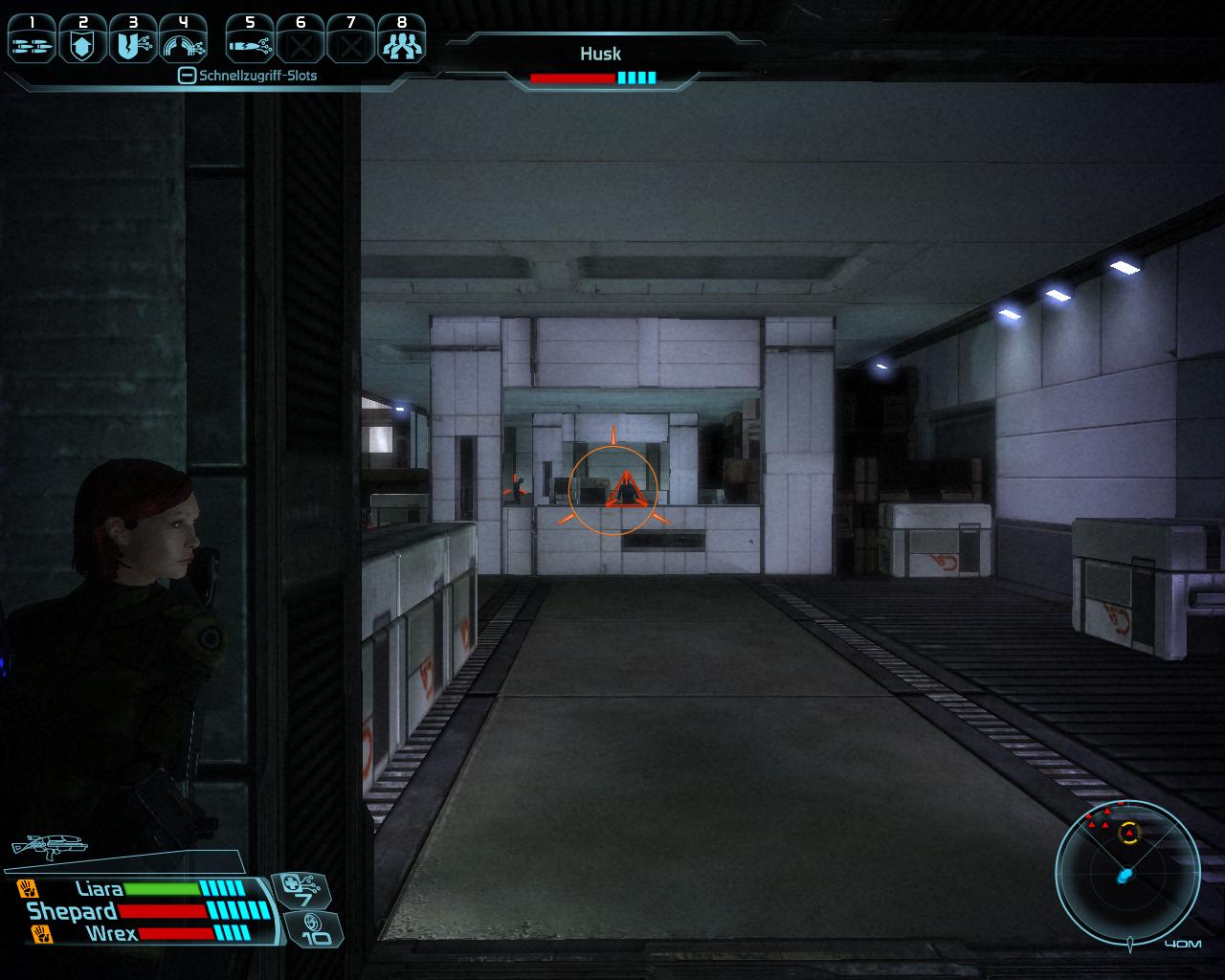 Das südliche Zivilgebäude beheimatet in der großen Halle zahlreiche Husks, die ihr von der ersten Deckung, gegenüber der Tür gut erledigen können solltet. Schleudert sie mit Geschossen oder Fähigkeiten (Heben, Werfen usw.) von den Beinen, wenn sie anfangen ihren elektrischen Angriffe zu wirken. Das sollte diese unterbrechen. Die Halle beinhaltet einen Container in direkter Linie zur Eingangstür, zwei Kisten direkt nebeneinander (eine davon mit leichter Dechiffrierung) an der vom Eingang am weitesten entfernten Säule und zwei Kisten, die ihr beim Rausgehen leicht sehen sollte. Eine davon gegenüber der Treppe nach oben und eine (fehlerhaftes Objekt) nahe dem Eingang. Oben gibt's zwei Erste-Hilfe-Stationen und einen Waffenspind (leichte Dechiffrierung).