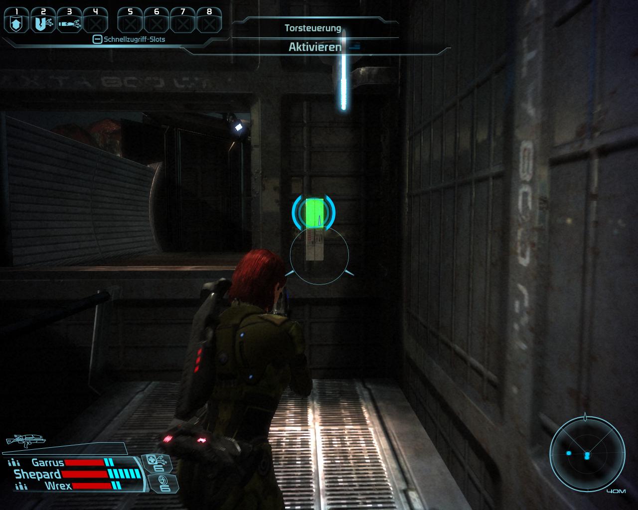 Auf halbem Wege über die Oberflächenkarte kommt ihr an eine Raffinerie. Sie wird von drei Geschütztürmen bewacht. Ihr müsst diese Türme nicht zwingend zerstören. Es reicht aus, davor rechts abzubiegen und auf dem Weg in die Raffinerie zu fahren. Im Hof erwarten euch Geth-Schützen, Geht-Frontläufer, usw. erledigt sie und betätigt dann die Torsteuerung im nordwestlichen der drei Gebäude. Dadurch öffnet sich das Tor in die Zielrichtung.