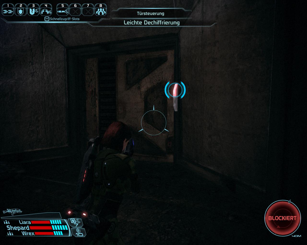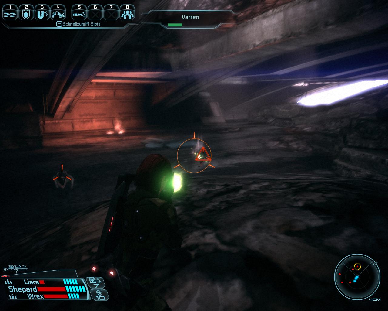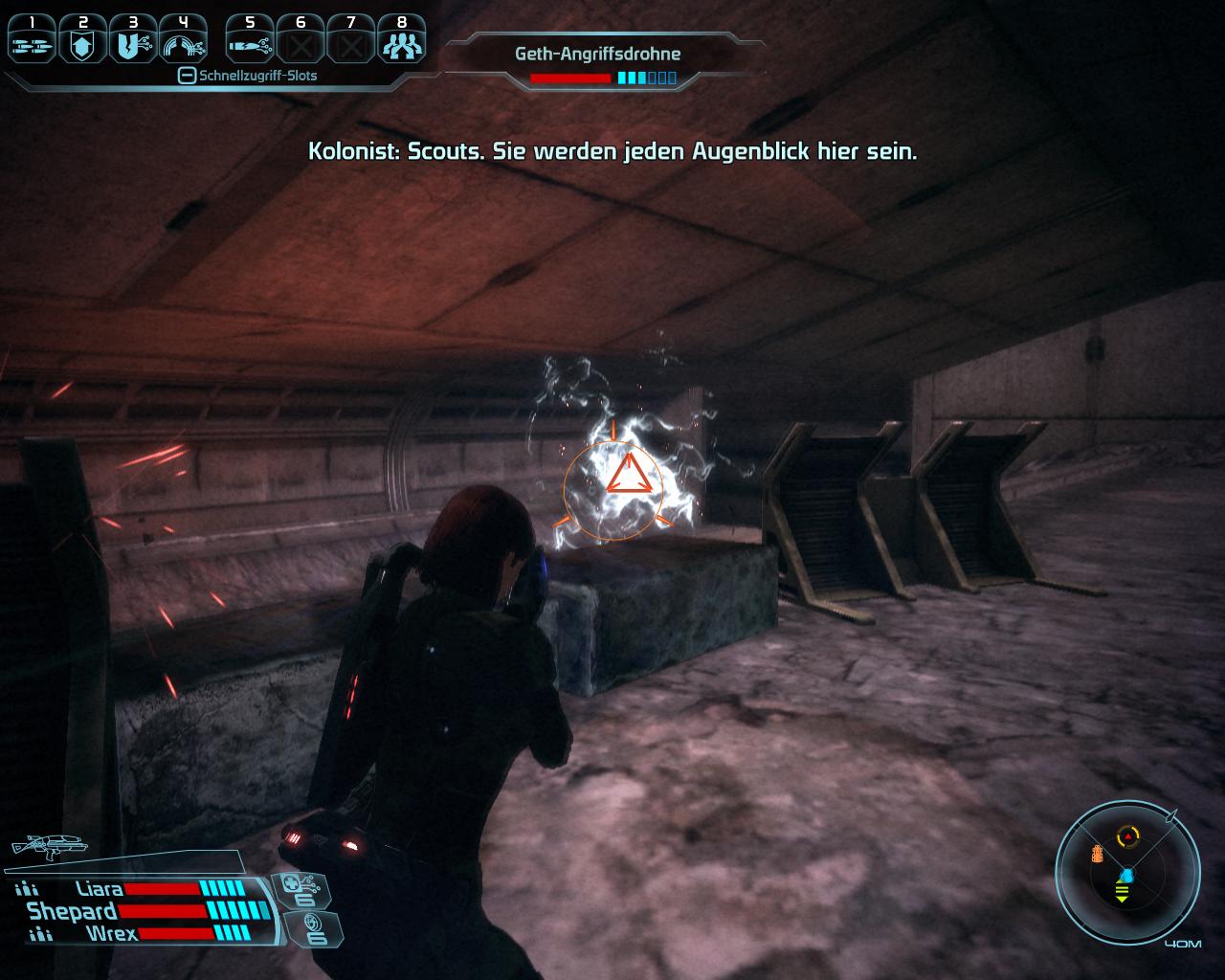 Wenn ihr durch das Tor am Ende der ersten Strecke fahrt, dürftet ihr Geplapper über Funk hören. Jemand hört ein Fahrzeug, euer Fahrzeug. Steigt aus und geht die Rampe ins Flüchtlingslager runter. Dort unten hin sind die Überlebenden der ExoGeni Forschungsstation geflüchtet, als die Geth angriffen. Die Unterhaltung mit Ethan Jeong und Juliana Baynham beginnt automatisch. Juliana ist deutlich kooperativer als Jeong, der Informationen zurückzuhalten scheint. Juliana bittet euch ihre Tochter zu finden, die noch bei ExoGeni ist. Wenn ihr genug gehört habt, könnt ihr euch die Datenrettung Nebenquest von Gavin Hossle hohlen. Sie ist sehr leicht parallel zur Hauptmission zu erfüllen. Mehr gibt es im Flüchtlingslager nicht zu holen. Steigt wieder in den Mako, fahrt über die Rampe einen Stock höher und folgt dem Skyway zu ExoGeni.