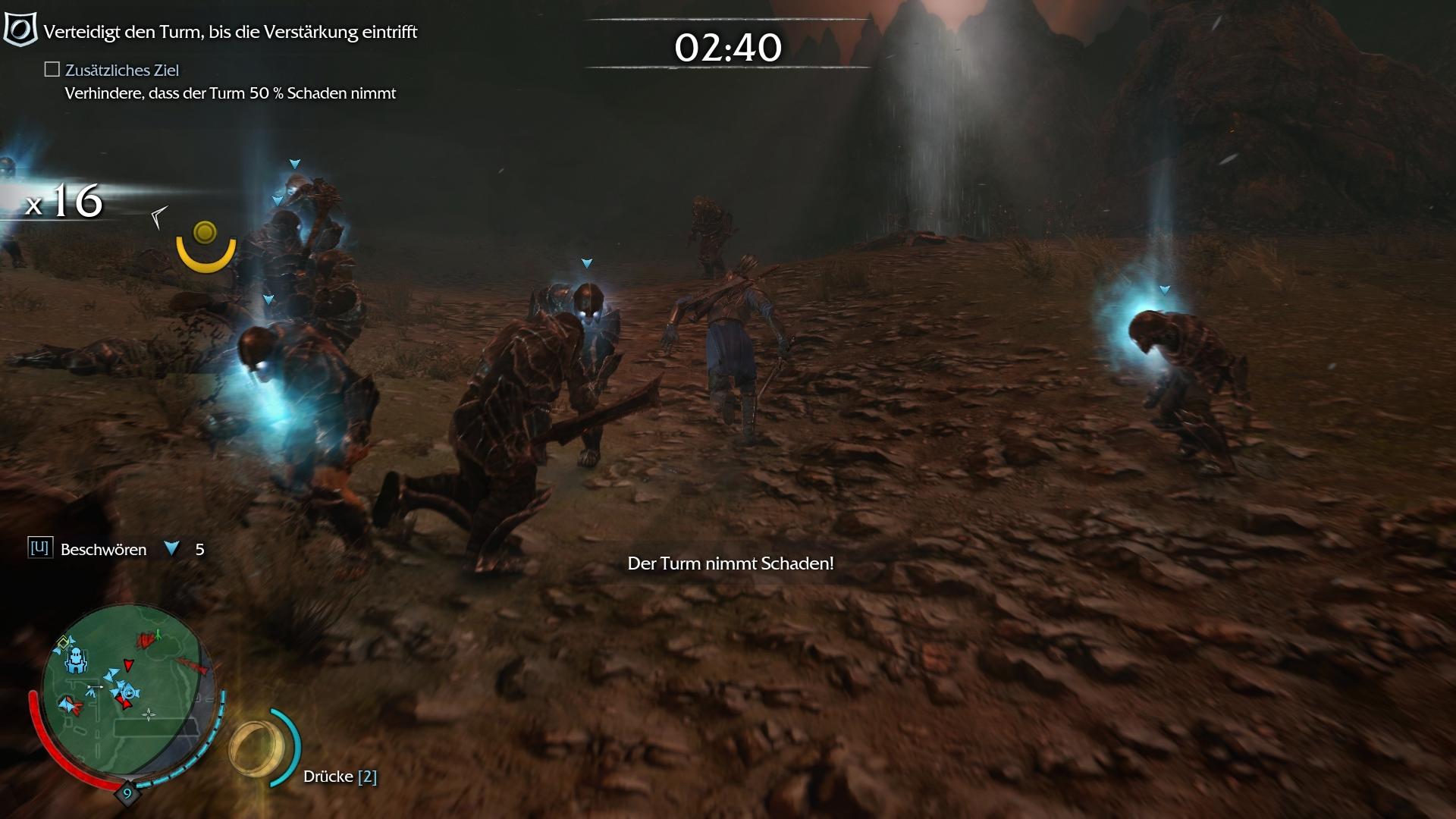 Distanziert euch am Ende sofort vom Turm, wenn der Graug kommt! Er tötet euch mit einem Hieb. Aber eine große Urukhorde bleibt lange genug am Leben, um den Turm zu verteidigen.