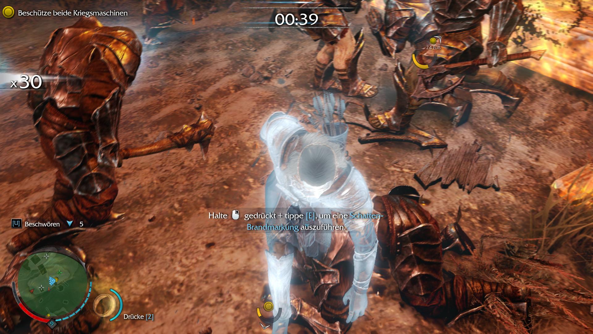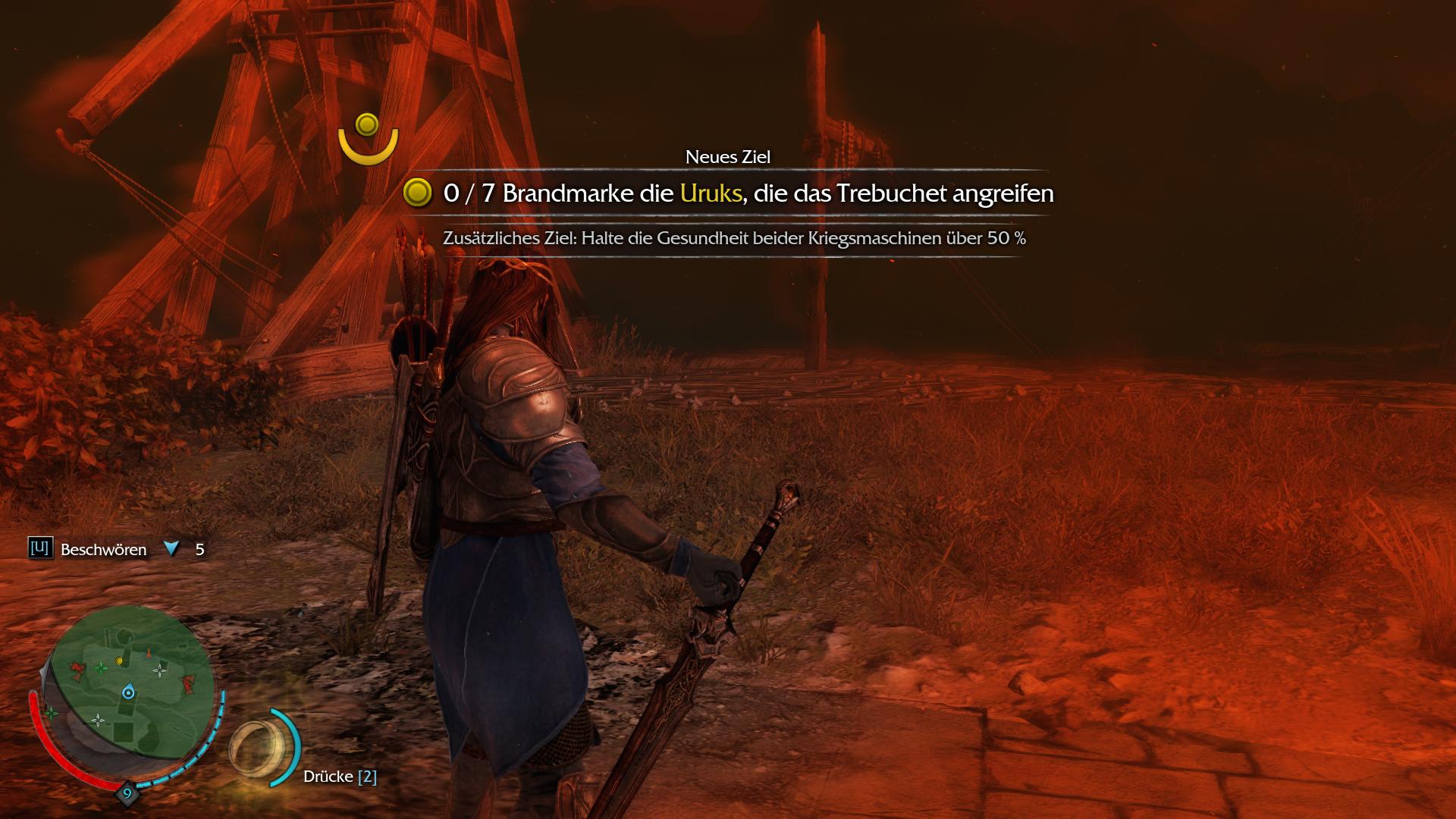 Das erste Katapult nimmt am meisten Schaden, da es früher angegriffen wird. Deshalb nur kurz zum zweiten rüber laufen, dort einmalig 10 oder 15 Uruks konvertieren und dann wieder zurück.