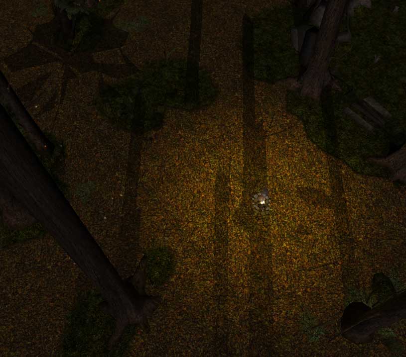 Ein Gelände zu malen ist nur die halbe Arbeit. Damit das Gebiet einigermaßen realistisch erscheint, sind zudem platzierbare Objekte von Nöten. Um diese zu verwenden, müsst ihr in der Werkzeugleiste "Platzierbare Objekte platzieren" auswählen, woraufhin ein weiteres Menü ähnlich den Platten aufklappt. Nun könnt ihr euer Szenario mit Objekten anreichern. Da wir ein Massaker am Druidenhain benötigen, schlage ich ein paar Leichenteile aus der "Schlachtfeld" Palette vor und in der Nähe des Hains ebenfalls ein Lagerfeuer aus der "Verschiedenes" Sparte. Wie bei dem Startpositionsobjekt, könnt ihr auch diese Objekte nach dem Platzieren mit gedrückter Umschalt- und rechter Maustaste rotieren lassen.