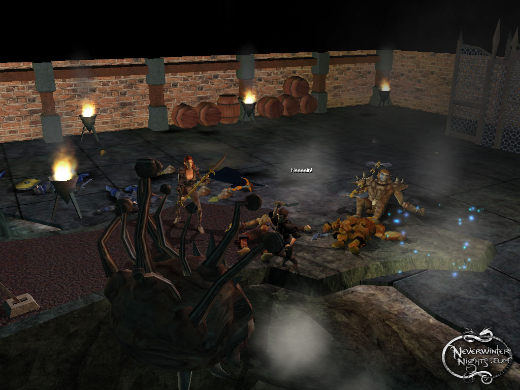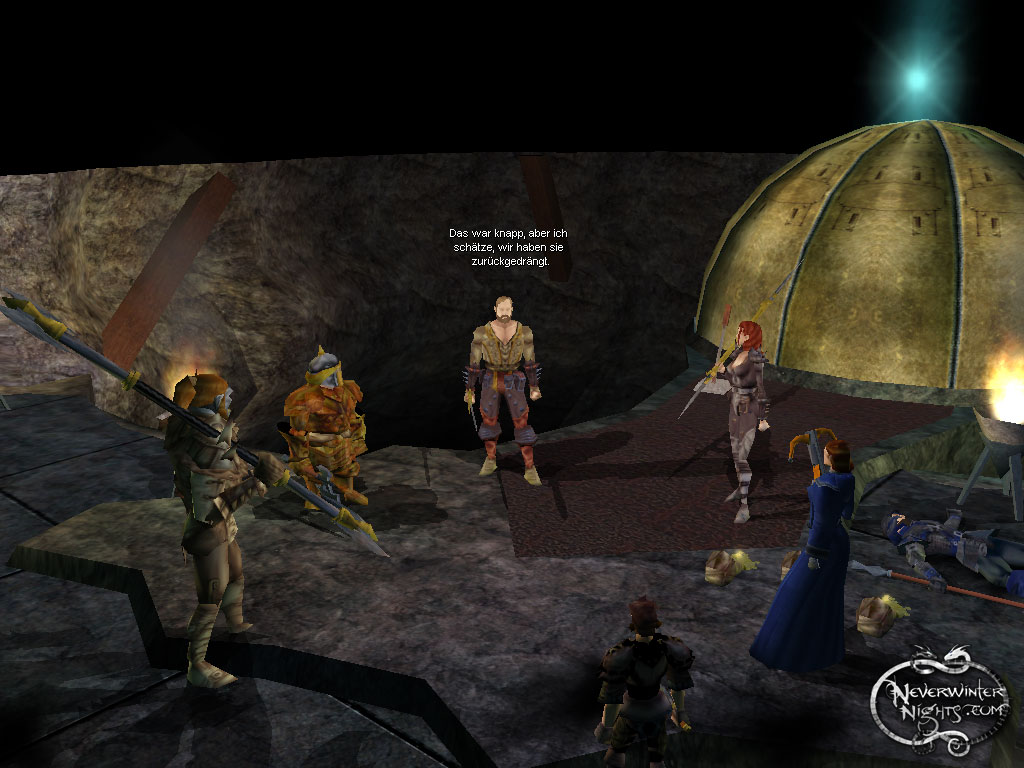 Bevor sich eine Verschnaufpause einstellt, erhebt sich ein Betrachter hinter Durnan aus den Tiefen des Unterbergs <1>. Von seinem Angriff überrascht bricht Durnan zusammen. Die euch bekannte Heldentruppe (Daelan, Linu, Tomi und Sharwyn) stürmt sofort den Brunnen hinunter, um es mit den Bestien aufzunehmen. Bevor ihr es ihnen gleich tut, gibt es jedoch noch andere Orte zu erkunden und Leute zu treffen.