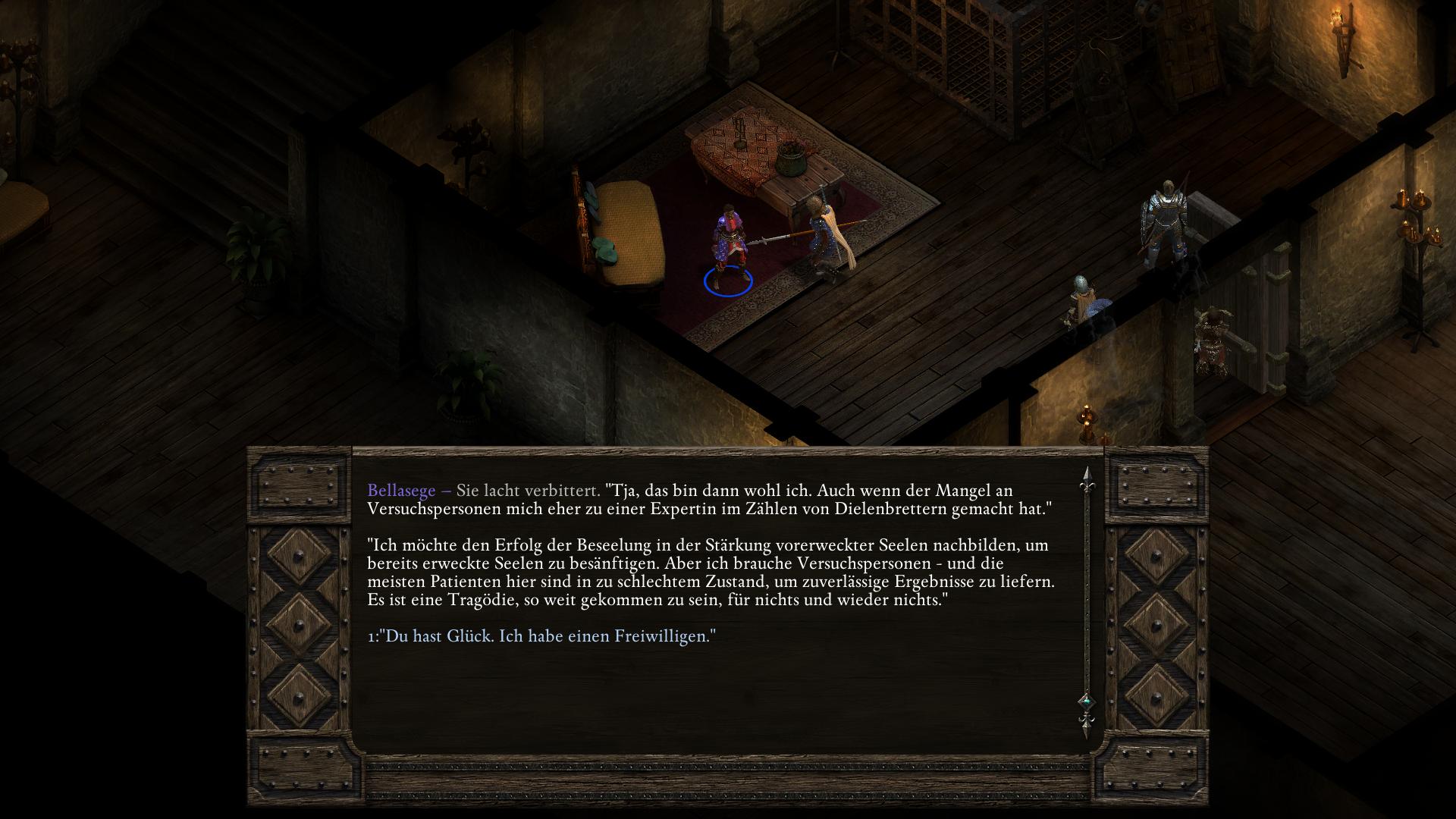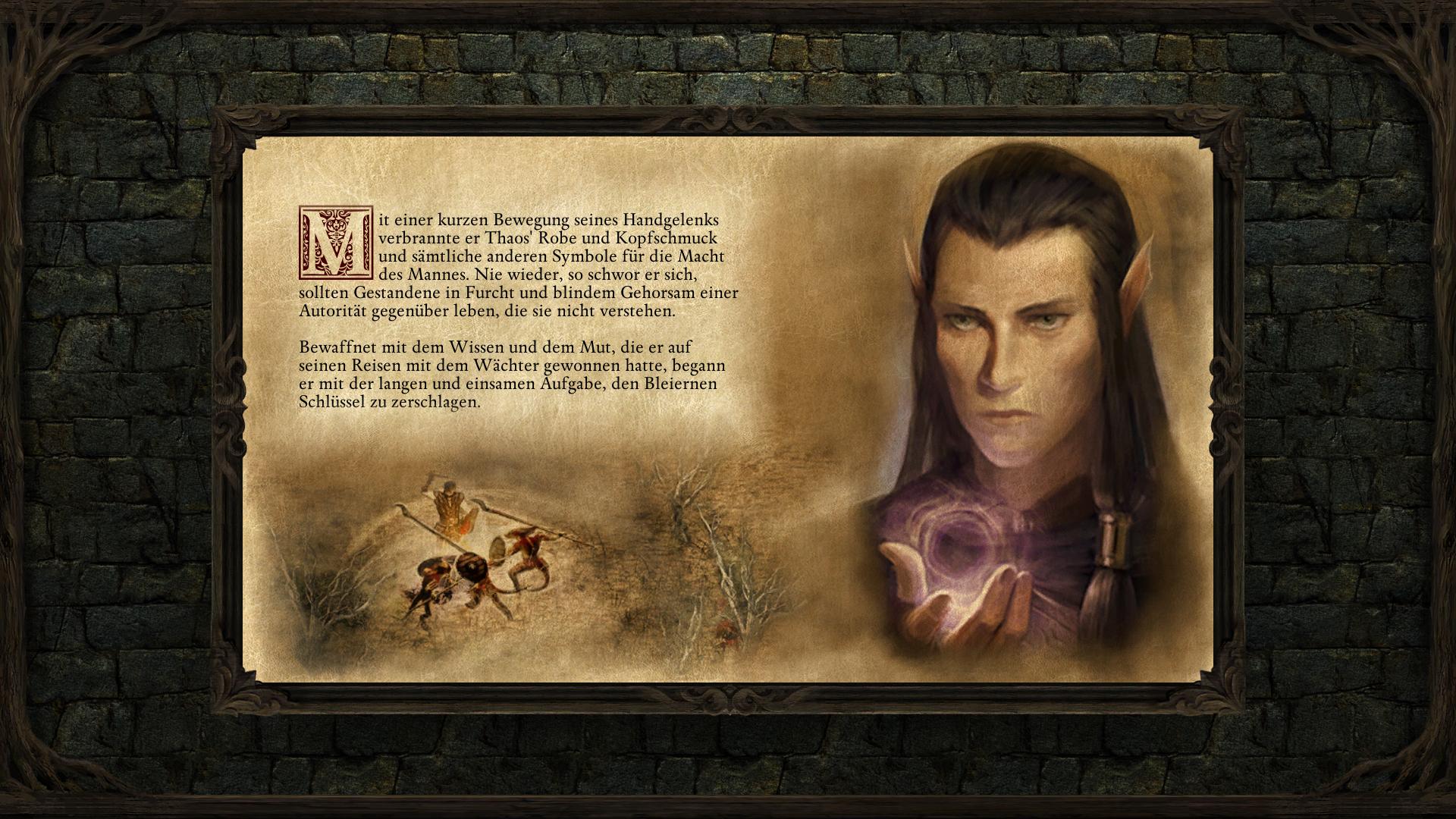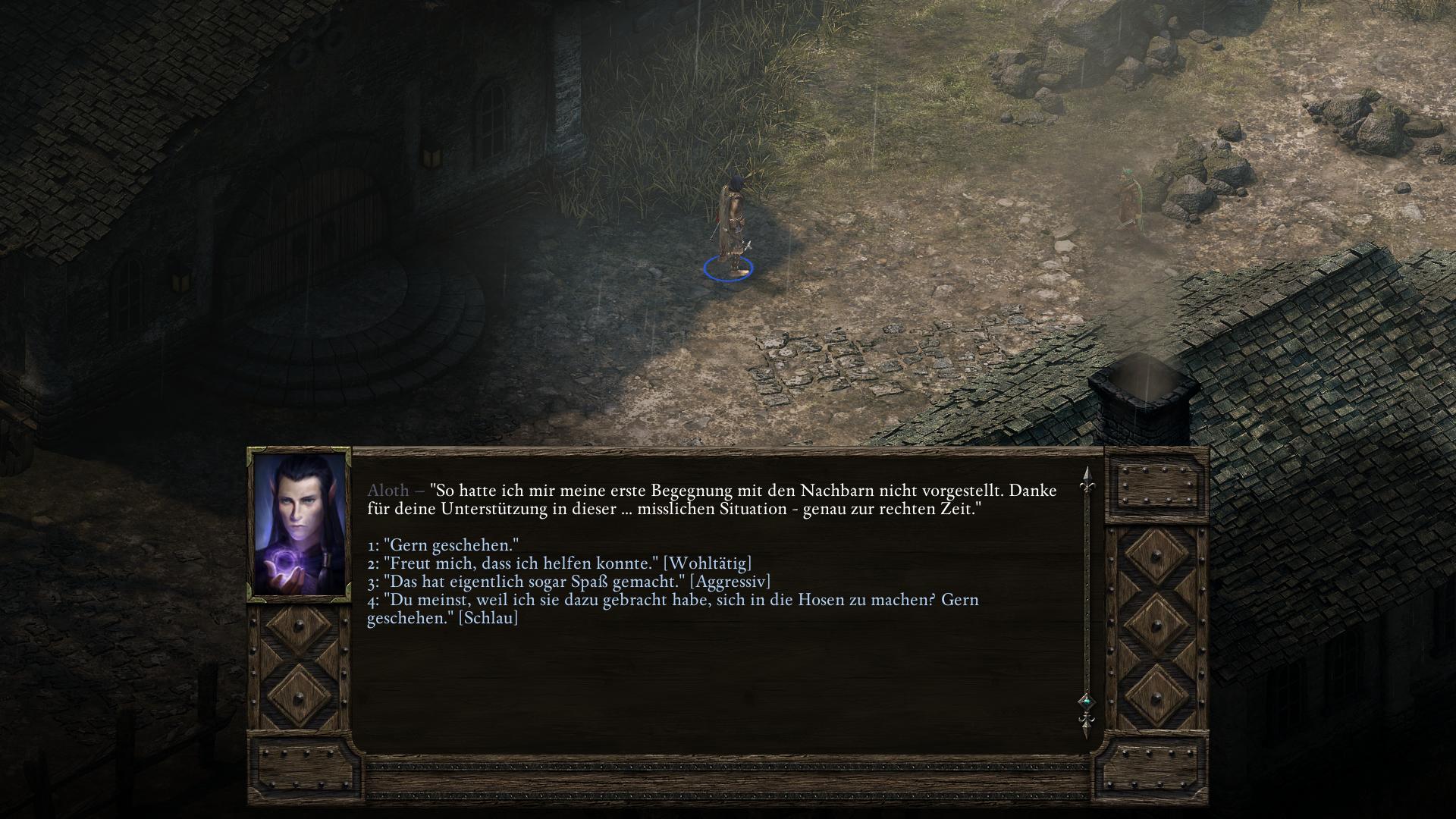 Der Zauberer Aloth wird vor dem Gasthaus zum Schwarzen Hund von Goldtal von einigen aufgebrachten Anwohnern bedroht, weil er diese scheinbar zuvor übelst beschimpft hat. Helft ihr Aloth aus der misslichen Lage, bietet er seine Gesellschaft an. Wie ihr später erfahrt, war der Auslöser für den Streit nicht Aloth eigene Persönlichkeit, sondern die Seele eine Frau, die zusätzlich in seinem Körper wohnt. Ähnlich wie es bei der Wächter-Seele eures Hauptcharakters der Fall ist.