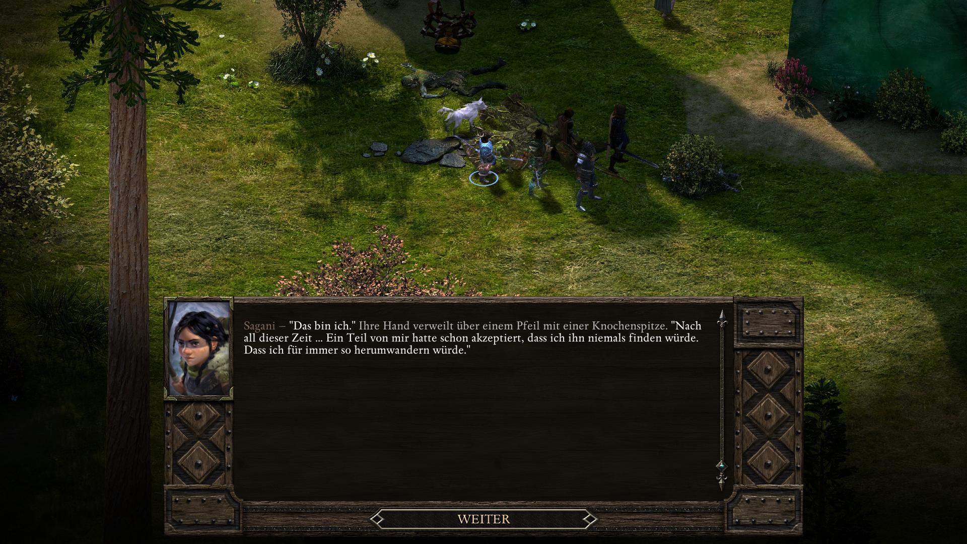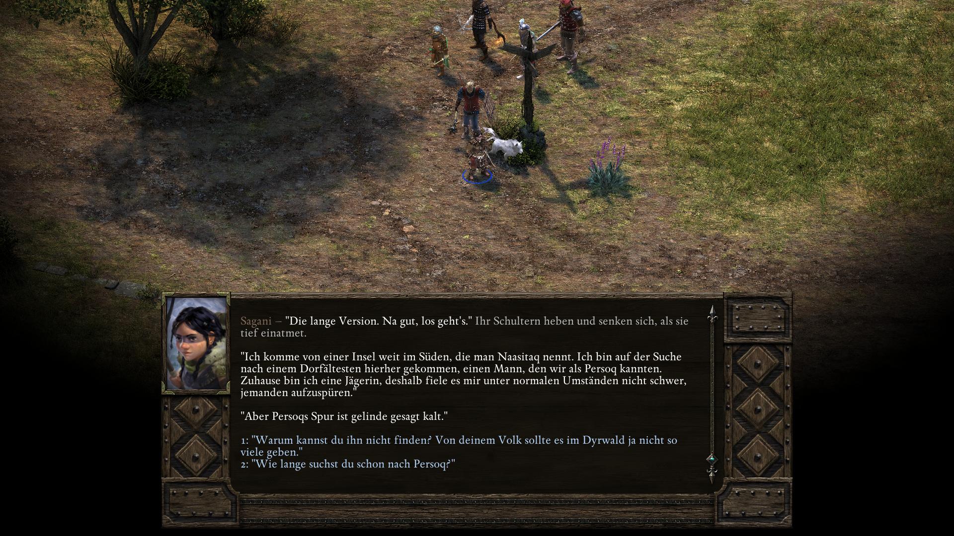Die Zwergen-Jägerin Sagani ist mit ihrem Fuchs Itumaak in den Waldend-Ebenen auf der Suche nach Persoq, der Reinkarnation ihres Dorfältesten. Ihr könnt Sagani anbieten, ihr mit euren Wächter-Fähigkeiten zu helfen Persoq in seiner aktuellen Gestalt zu finden, woraufhin sich Sagani euch anschließt.